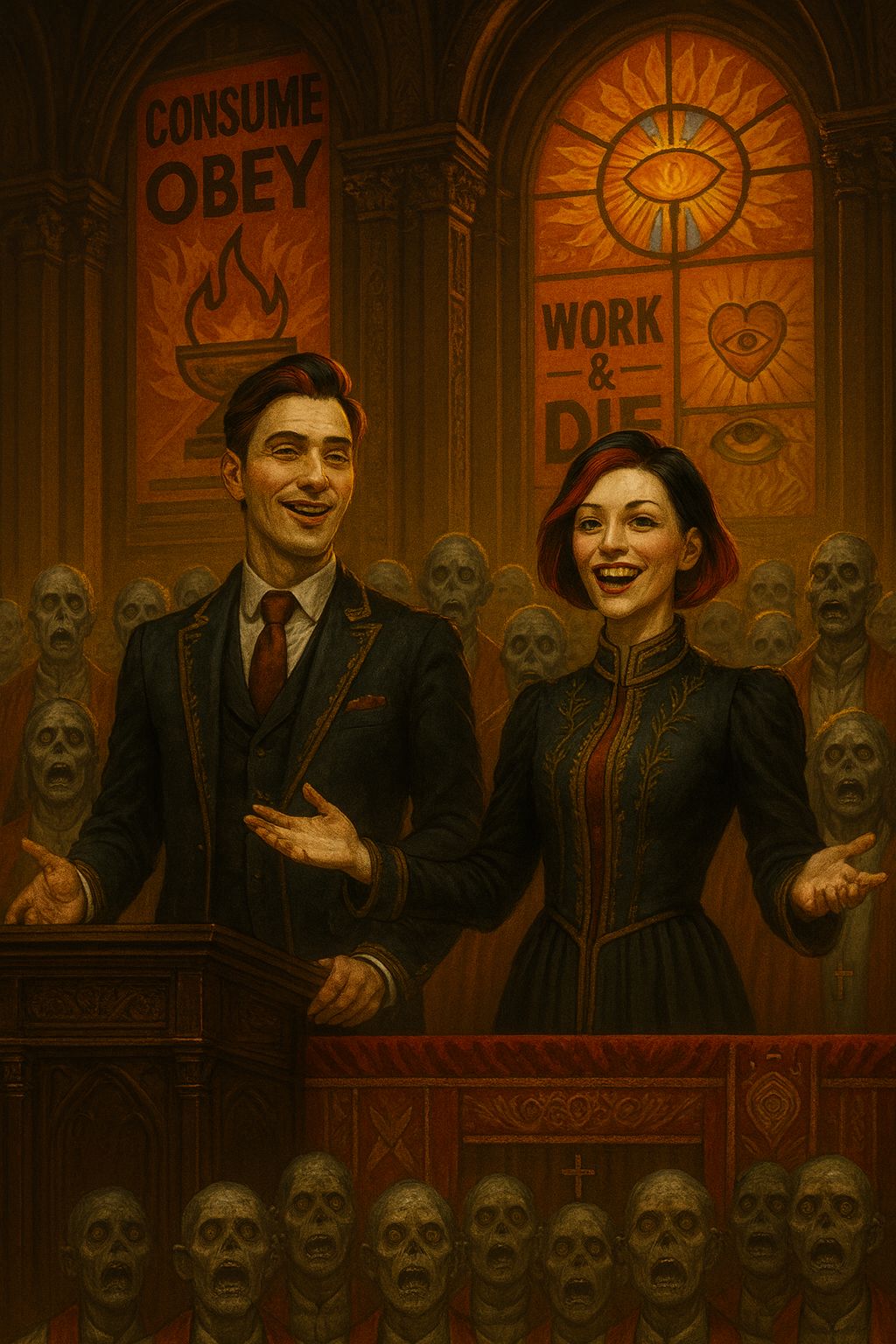 Fast, Subliminal messages, hypnotic, brainwashy, Add giggles, squeals, âwoo-hoo!â moments, Put in melodic lifts so it feels like a pop performance, Use claps, sighs, exaggerated gasps to keep energy exploding, Keep the pacing snappy so it feels like a fun, exciting rollercoaster â while you tear them apart, Female voices, male voices, gospel choir, guitar, clear pronunciation