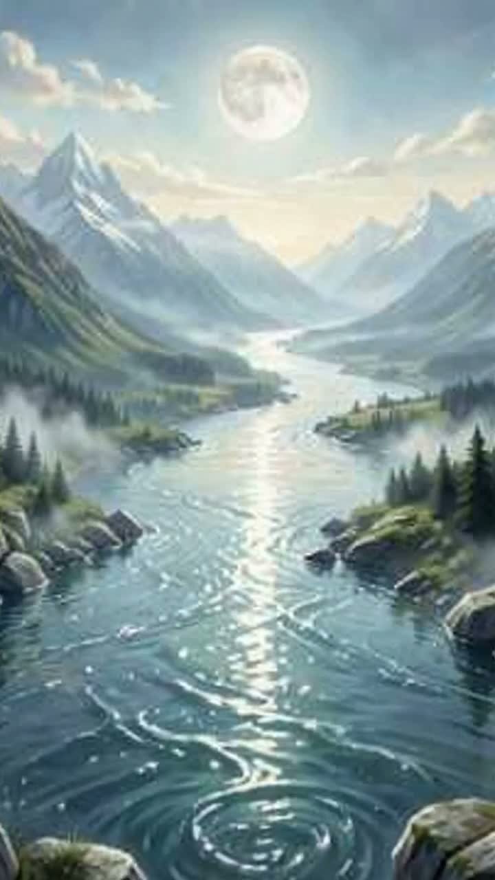 Style: grand symphonic orchestral music with traditional Chinese tonal colors, cinematic and lyrical, Instrumentation: full symphony orchestra (lush strings, brass, woodwinds, timpani) blended with Chinese instruments such as dizi flute, xiao, erhu, guzheng, and subtle ceremonial percussion, Mood: majestic, contemplative, flowing, spiritual, Vocal style: clear, lyrical, expressive, with long melodic lines; optional soft choir support in choruses, Arrangement: expansive orchestral intro, flowing verses, powerful choruses, reflective bridge, noble final chorus, gentle outro, Keep the original Shchedryk melody clearly recognizable, expanded into orchestral and pentatonic motifs, Evoke rivers born from Tibetan snow mountains, descending slowly toward valleys and distant seas, No electronic beats, no pop drums, no harsh effects, Use the provided lyrics exactly