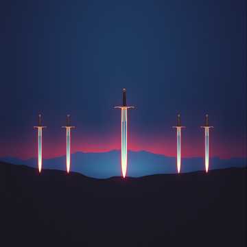Dark symphonic metal with gothic and folk influences, dual vocals (male baritone/harsh + female soaring/ethereal), epic fantasy storytelling about five female warriors (Lucretia, Sonja, Lizabeth, Dominique, Sapphire) battling the dark sorceress Orcussa, Mix power metal, folk melodies, gothic choirs, black metal intensity, and cinematic orchestration, Journey through hostile elfland, burning deserts, high mountains, and three hostile kingdoms before the final confrontation, Emotional, atmospheric, dramatic, with choirs, folk instruments, symphonic strings, and thunderous drums