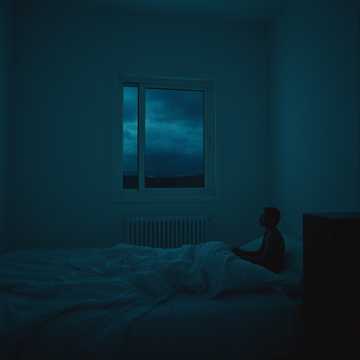 Minimal emotional song about racing thoughts and mental noise at night, Very close, soft lead vocals, restrained and tired, Sparse production with low pulsing bass, subtle ambient noise, distant glitch or vinyl-like static textures, and minimal, heartbeat-like percussion, Lyrics focus on overthinking, insomnia, and learning to sit with the noise without collapsing, No big chorus drop, controlled dynamics, lots of space and silence, Intimate, anxious, and honest