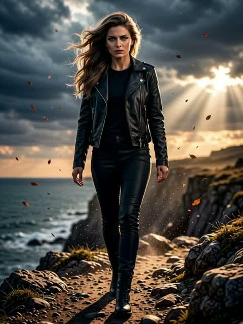 Modern cinematic alt-rock / hard alt-rock, mid-tempo, dynamic arrangement with driving distorted guitars, clean guitar arpeggios and picking in verses, punchy bass with rhythmic slides and accents, tight drums with varied fills and dynamic hits, layered low strings and subtle synth pads for atmospheric tension, Include crescendos into pre-chorus and choruses, occasional breakdown with minimal sub-bass and sparse percussion before final chorus for impact, Close-mic female lead vocal (Elyra), dynamic phrasing: restrained in verses, dramatic in pre-chorus, emotionally intense and open in choruses, occasional harmonized backing vocals, controlled grit and menace, subtle audible breath for intimacy, Instrumental hooks accentuate lyrical tension and release, expressive phrasing matching the drama of lyrics, bridge drops to low drone and heartbeat sub pulse, final chorus full emotional width and power, cinematic rock production with depth, contrast and energy to make every section compelling