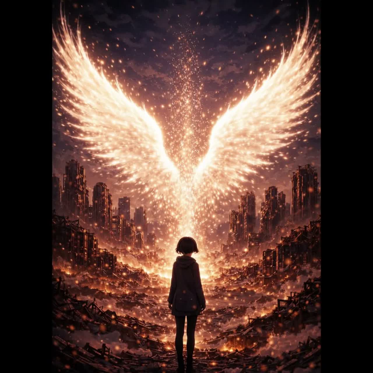 MACH64 style: djent x electronic x dark futurism, Baroque-inspired chord progression, Bach-like gravity, Djent riffs combined with electronic orchestra, Strings, choir pads, harpsichord-style arpeggios, Grand symphonic collapse, apocalyptic concerto, Slow to mid-tempo, heavy and majestic, Female vocal, emotional and solemn, Japanese with poetic English phrases, No death growls, no gritty shouts, Faith, prayer, love, pride, desire merging into one, Armageddon, transcendence, beautiful destruction, ‑No death growls, ‑no harsh screaming, ‑no guttural or gritty shout vocals