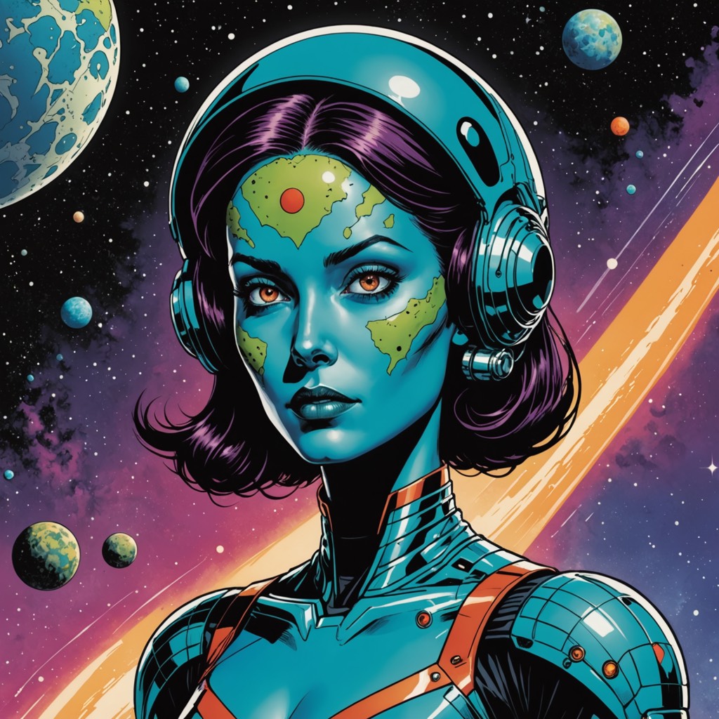 “Futuristic neo-soul (88 BPM) with jazzy synths, heavy bass, and swing grooves, Lyrics: abstract, cosmic love theme