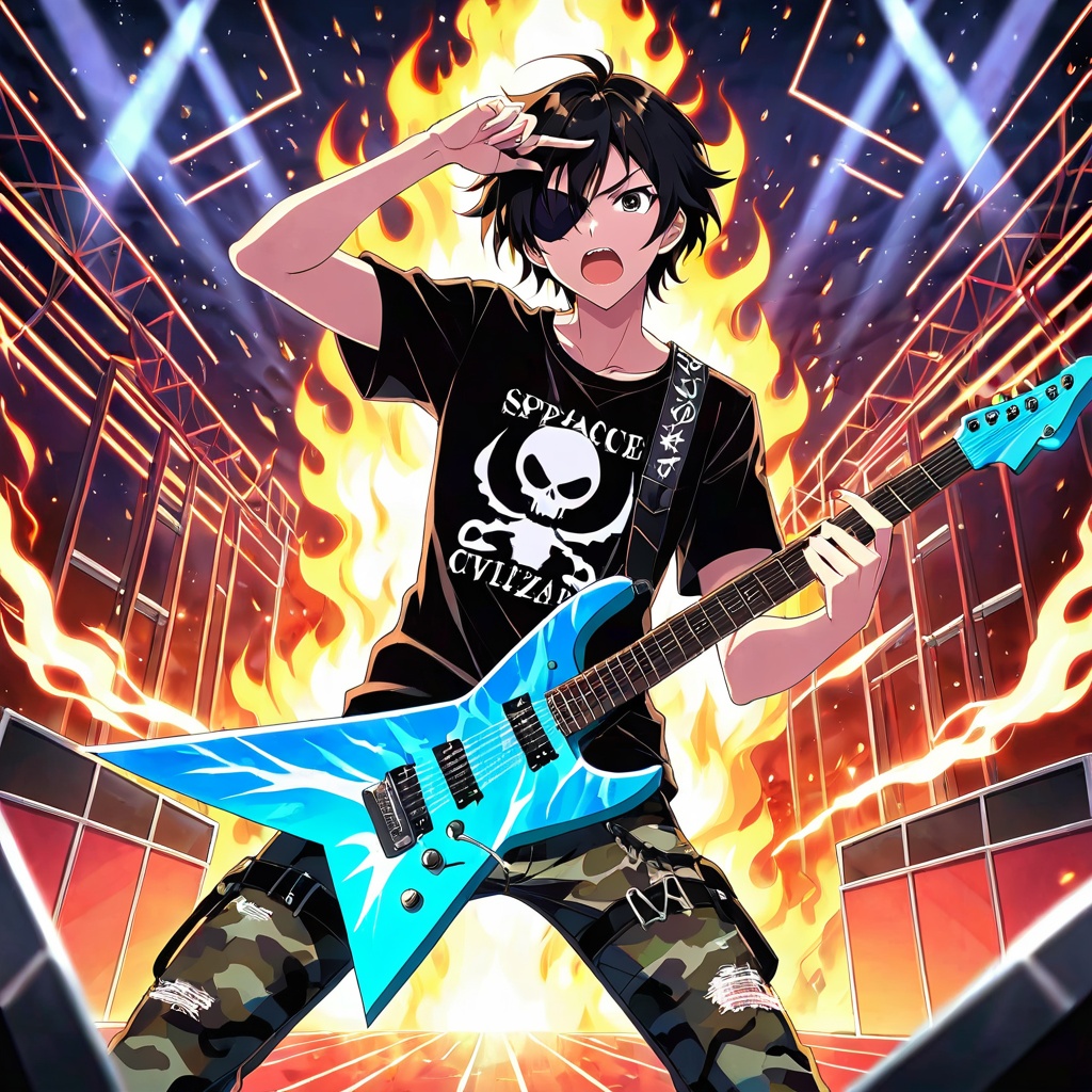 Emo Pop Punk x Theatrical breathy male vocals, experimental electro x orchestral, theatrical x crescendo, piano x trumpets, dance x fun, dirty bass x experimental pop, Japanese Taiko Drums