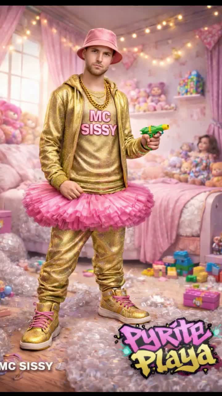 A playful comedic rap driven by bouncy basslines, bright chord stabs, and crisp hi-hats, with cartoonish FX and toy-like synths adding whimsy, Theatrical, exaggerated delivery uses humorous transitions and dynamic, intentionally awkward yet confident flows, Sparkling melodic hooks and playful ad-libs shine over rhythmic hip-hop beats, with spoken-word breaks, layered backing vocals, and standout catchy choruses, Fun vocal attacks and colorful melodic motifs round out this energetically silly, villain-themed soundscape
