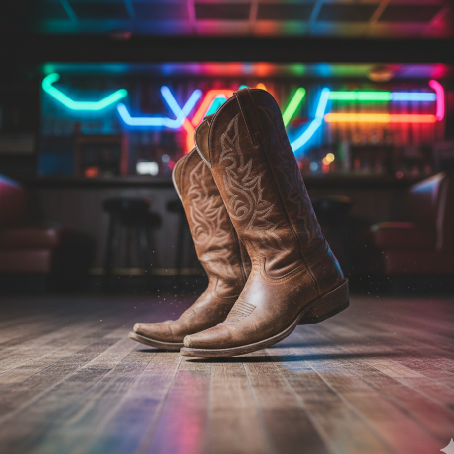 Honky-Tonk/Texas Swing fusion, 132 BPM, 4/4, key of A major, male vocalist warm lovesick crooner Bob Wills style, fiddle lead melody, pedal steel guitar, honky-tonk piano, upright bass walking, trumpet and trombone horn stabs, brushed Western swing drum kit, handclaps, dancehall energy, joyful and romantic, vintage live room sound, warm and unashamed, instrumental fiddle break, tender bridge, hard stop ending