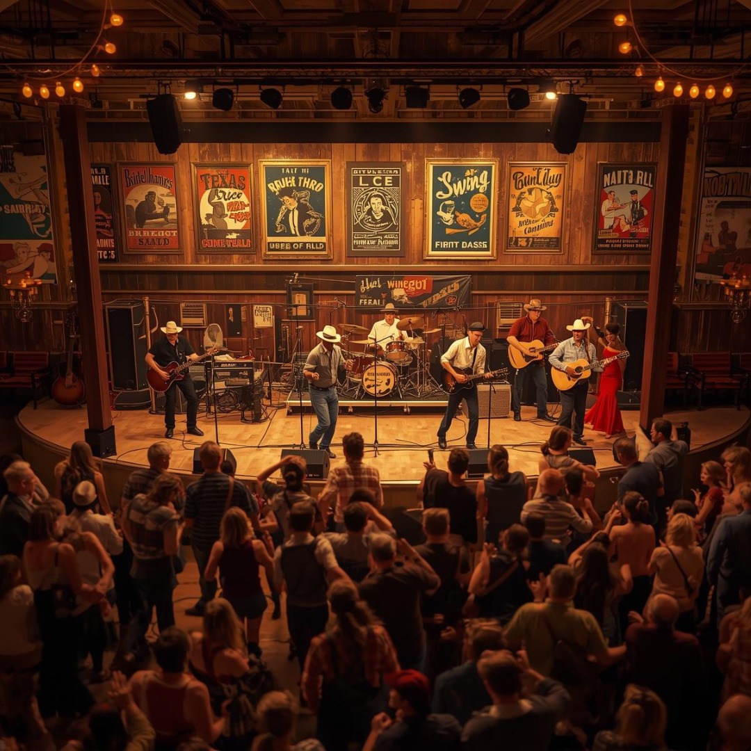 Texas Swing, Western Swing, upbeat fiddle and steel guitar, Asleep at the Wheel style, honky-tonk piano, walking bass, male vocal, Ray Benson vocal style, 170 BPM