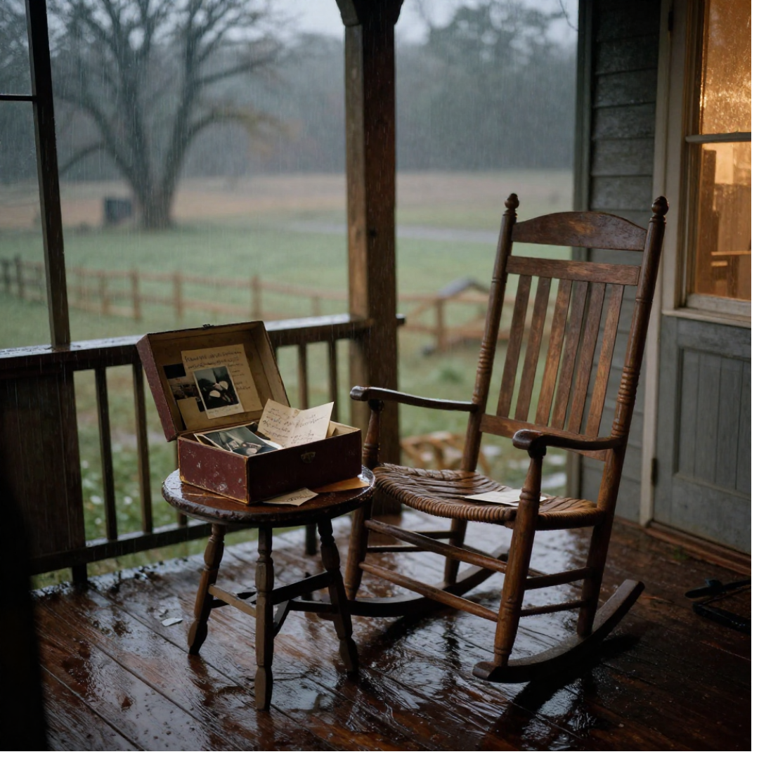 Heartbreak ballad, 85 bpm, 4/4 timing, weeping pedal steel, fingerpicked acoustic guitar, walking upright bass, subtle brushed drums, Mature, weathered male vocals with emotional depth and restraint, Rain and thunder atmosphere underneath