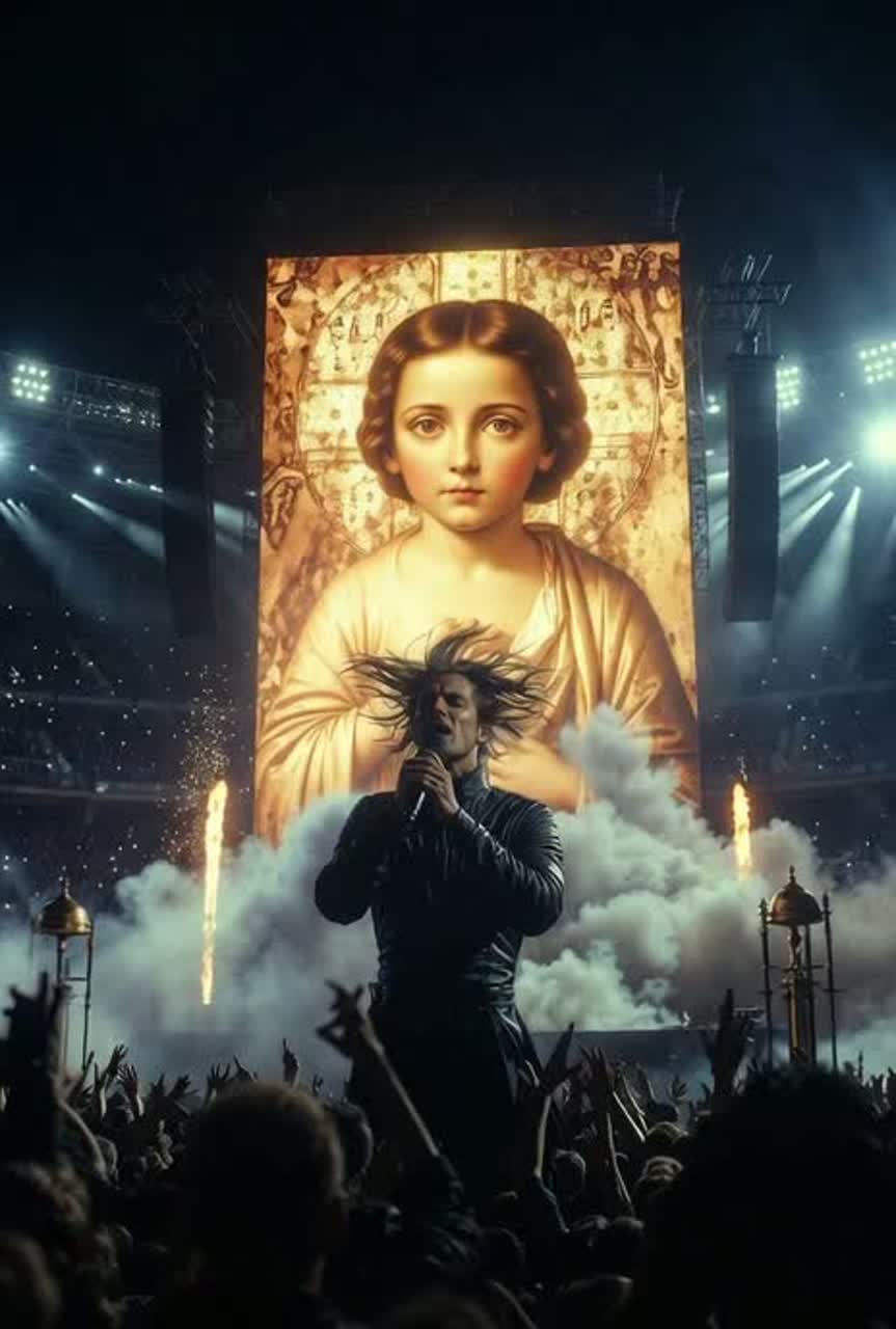 Epic symphonic stadium metal reinterpretation of the multilingual carol “Lulajże”, Male lead vocal: warm lyric–spinto tenor with operatic projection (Voxaris reference tone), Start immediately with lead vocal line — no intro, no ambient buildup, no vocalizations, Texture-driven sound: molten brass, velvet strings, crystalline bells, gritty guitars, deep sub-bass pulse, Massive stadium scale: 60, 000 crowd resonance blended subtly under climaxes, Drop-D metal guitars, wide tremolo layers, double-kick bursts only at emotional peaks, Verses intimate and lullaby-like; refrains explosive, sacred, and soaring, Maintain clarity in multilingual diction (PL/IT/EN) and preserve the holy atmosphere, Clip Volume +4 / Guitars +2 / Orchestra +3 / Drums +2 / Vocals +3
