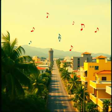 rhythmic with vibrant percussion and brass accents