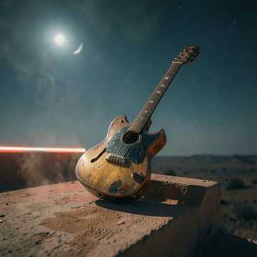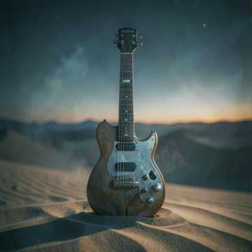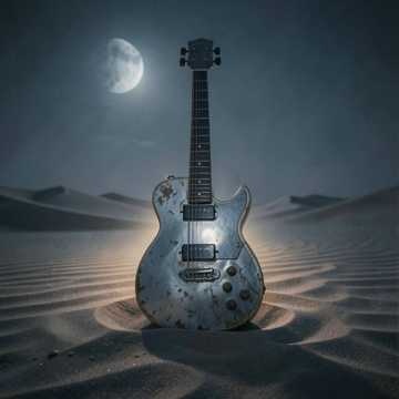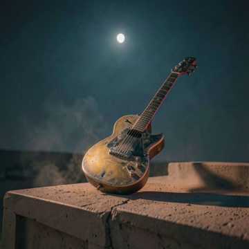 funk, Smoky desert blues fused with melodic techno: male vocals over a soft four-on-the-floor pulse, resonator guitar riffing in the mids, glassy pads and granular textures swelling around him, Verses stay dry and close, almost whispered; chorus blooms wide with stereo guitar swells, doubled hooks, and long, shimmering delays hanging over a deep, pulsating sub and intricate, airy percussion, Late-night rooftop energy, spacious yet maximal, desert blues, techno, complex, ambient, electronic, vocal, soft