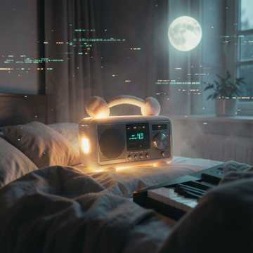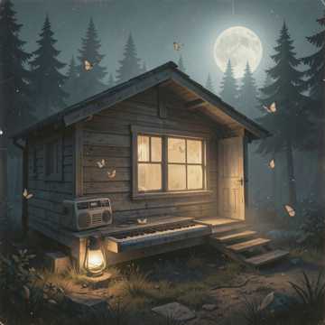 Comfort-first nostalgic lo-fi instrumental inspired by 90s and 2000s camp-horror memory, Felt piano and Rhodes lead the harmony, supported by soft synth bass, dusty boom-bap drums, warm analog pad, gentle nylon guitar, a quiet transistor organ bed, subtle Mellotron flute or choir texture, theremin, faint clean environmental space, and a very low wordless choir pad, Tight modern studio mix, polished master, no hiss, no buzz, no vinyl crackle, no cassette noise, no degraded playback artifacts, Soft highs, rounded transients, warm controlled lows, cohesive shared reverb space, stable stereo imaging, intimate headphone-first mix, subtle saturation without dirt, loop-friendly, familiar, safe, cozy, gently uncanny, never frightening