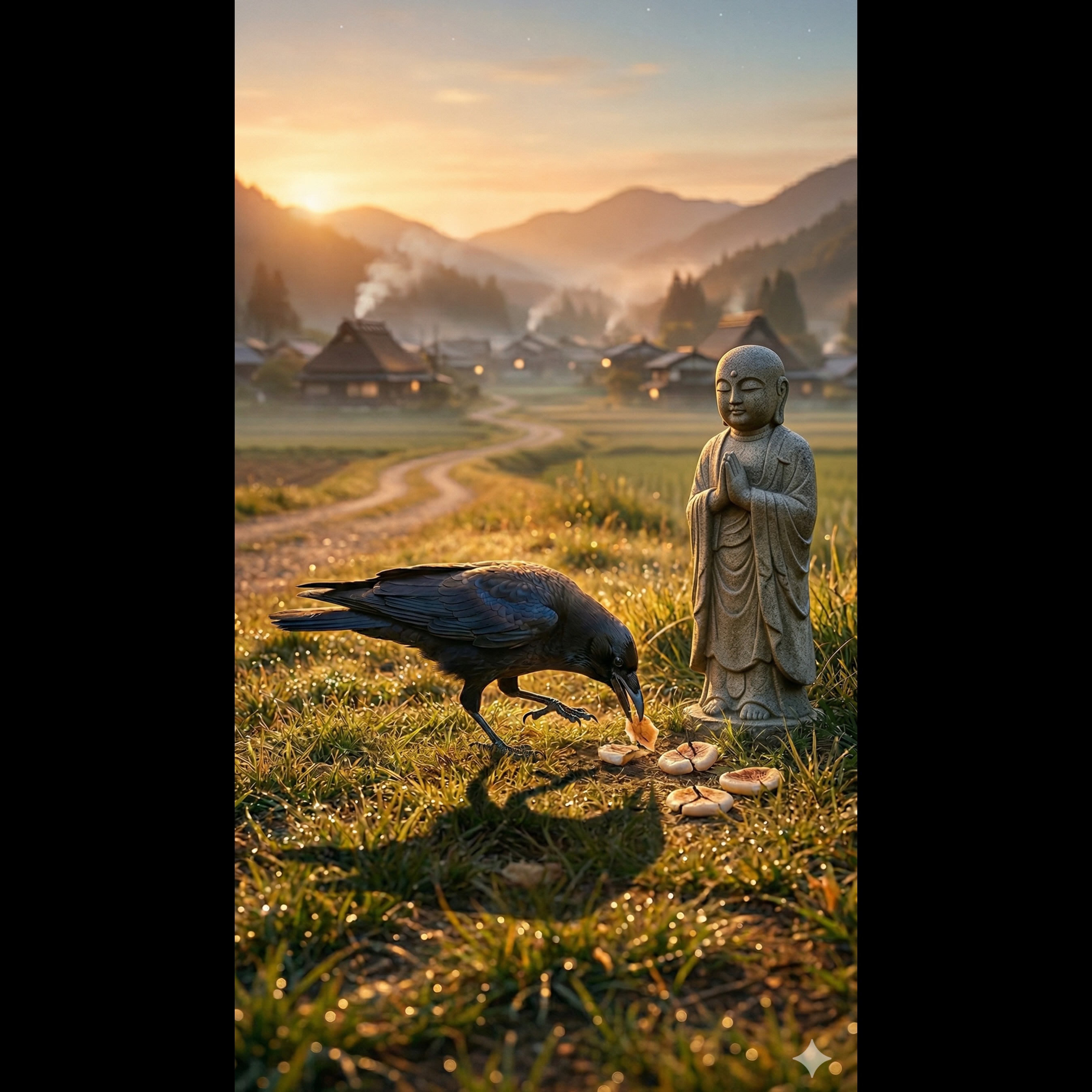 A bright and refreshing morning folk song capturing a crow's daily life at dawn, The warm, sun-drenched sound of a harmonica blends with the crisp, hopping plucking of a Koto, A young female vocalist sings with a clear and cheerful tone, The melody is simple and lighthearted, evoking the sight of a crow pecking at the grass and finding food in the early light, The atmosphere is grounded, cozy, and full of new beginnings, ‑electronic, ‑synthesizers, ‑mystical, ‑ambient, ‑spiritual, ‑dark, ‑heavy reverb, ‑orchestral, ‑flute, ‑quena, ‑charango, ‑taiko, ‑enka, ‑kobushi, ‑operatic, ‑sad, ‑distorted, ‑harmonica solo only, ‑dominant guitar