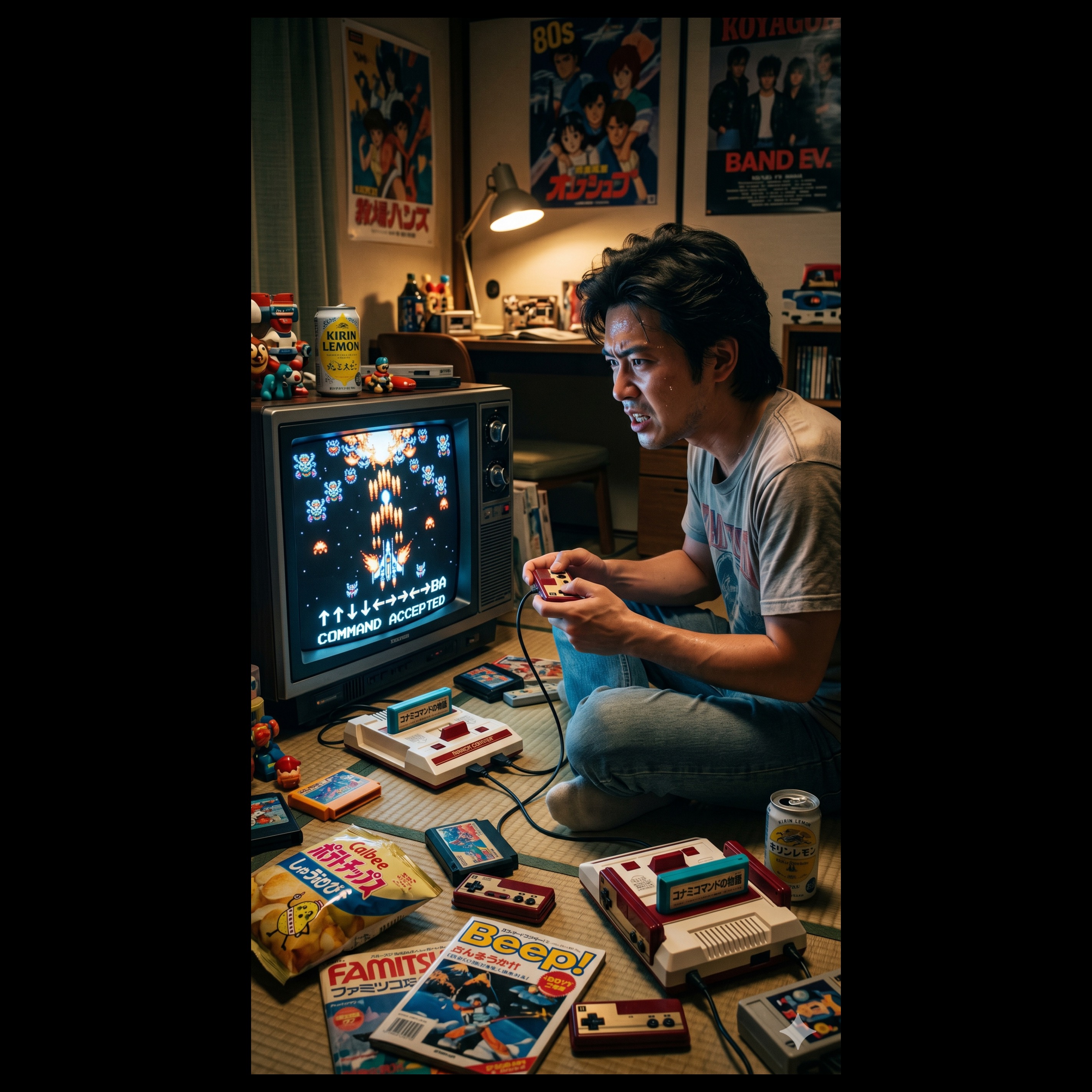 Pure, unadulterated 80s Japanese punk rock energy, Raw, straightforward, and burning with passion, The driving bass and fast, energetic drums create a relentless rhythm, Distorted but simple electric guitar chords crash through the mix, The atmosphere is nostalgic yet rebellious, questioning the very nature of existence and creation, A passionate male vocal sings with raw emotion, almost shouting his heart out, carrying a message that bridges ancient myths with digital futures, ‑polished, ‑electronic, ‑synthesizers, ‑autotune, ‑slow, ‑acoustic, ‑pop, ‑modern rock, ‑calm, ‑quiet, ‑female vocals