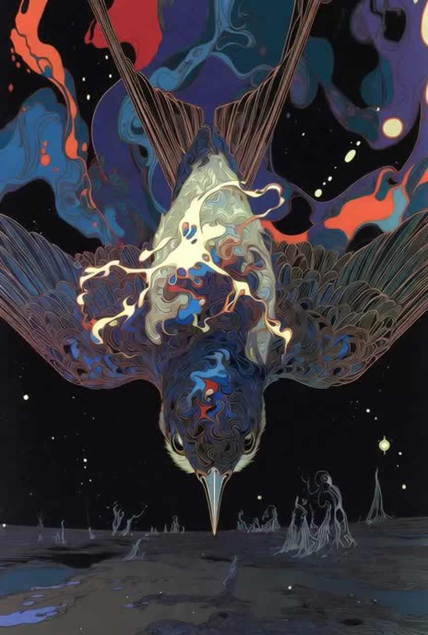 Key: Minor (e, g, F# minor for darker cosmic feel), ‑avoid safe polished sounds, ‑avoid emotional uplift, ‑avoid minimalism or sparsity, ‑avoid clean vocals, ‑avoid conventional structures, ‑avoid loss of disturbing eerie quality, ‑avoid straightforward resolution, ‑avoid low-intensity throughout