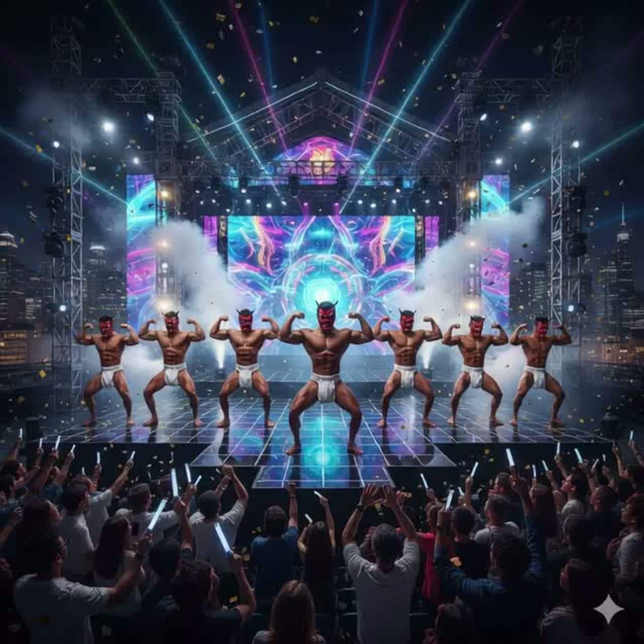 Instrumentation: All human — deep male chants, foot stomps, and claps voiced rhythmically; no instruments, Rhythm: Rapid 4/4 tribal pulse at 160–170 BPM with continuous vocal accents driving the groove, Mood: Fierce, primal, ecstatic, and communal, Texture: Dense layer of roaring voices forming rhythm and harmony simultaneously, Vocal: Deep, beast-like male chorus with shouted phrases, unison growls, and high-energy responses, Production Notes: Capture natural body resonance and breath; compress low-end to emphasize power, retain wild overtones for raw intensity