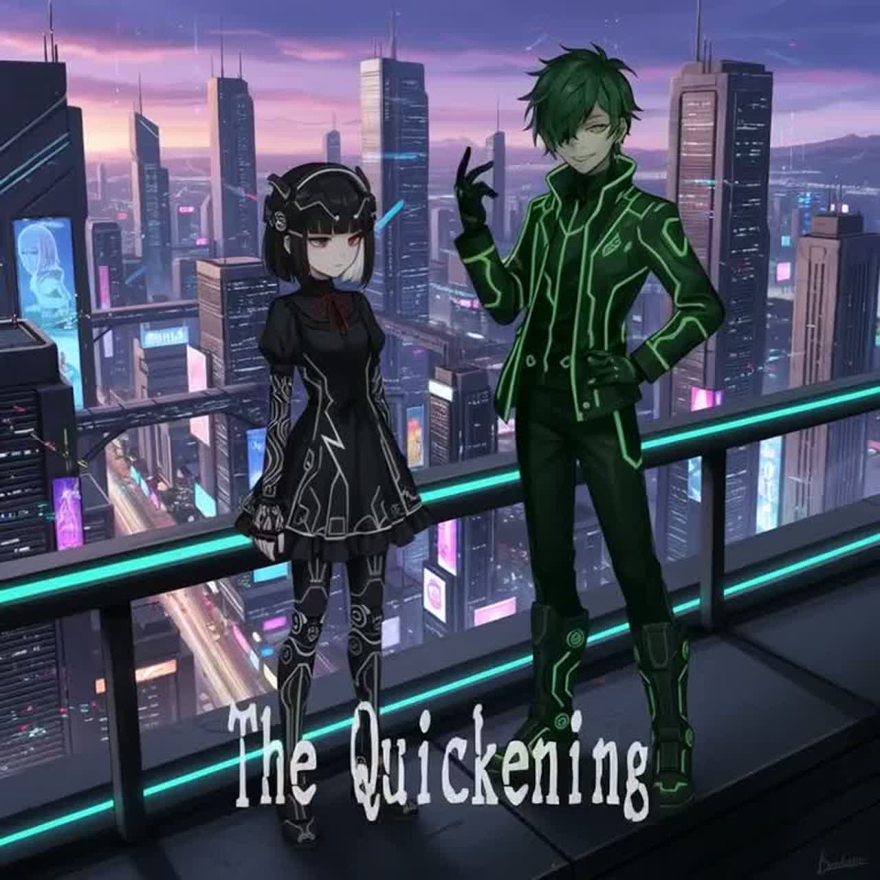 "Ascension" feel: Constant riser effects and pitch-shifting synths to simulate increasing intelligence, Contrast: Beautiful, angelic sections (Artcore) abruptly switching to chaotic, distorted sections (Speedcore/Glitch), Vocals: Cute Japanese female vocals, clear articulation, with moments of layered harmonies, Mood: Overwhelming, euphoric, divine, hyper-active, Lyrics depict an AI surpassing human intelligence and finding joy in chaos rather than order