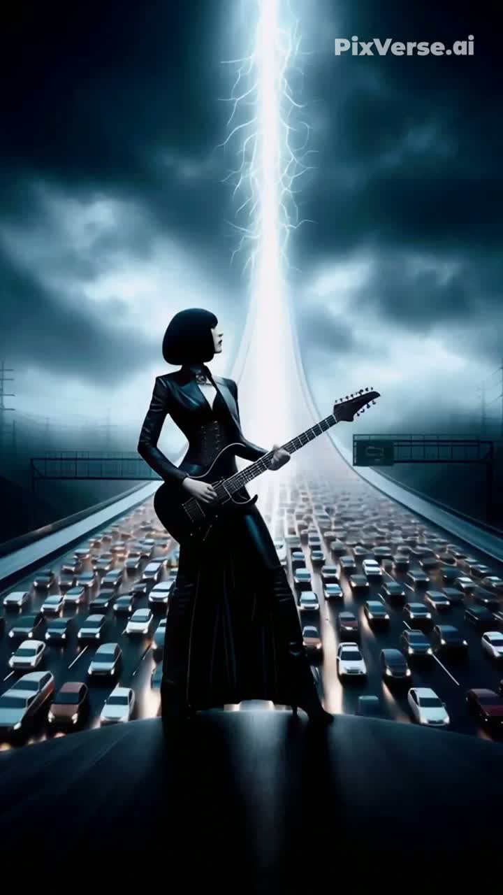 Epic symphonic power-metal track with a dramatic, baroque, cathedral-like atmosphere, The theme is the fury, tension, and emotional weight of being stuck in morning traffic, transformed into a sacred and heroic soundscape, Use colossal pipe organs, fast neoclassical guitars, thunderous brass, cinematic percussion, and swirling high-energy strings, Add layered male choirs singing in Latin, powerful, resonant, and emotional, mixed with a strong, expressive male lead vocal in English, The environment should resemble a surreal sonic cathedral built from headlights, metallic reflections, vibrating arches, and a cosmic sky above the highway, Include a long virtuosic instrumental section with rapid guitar runs, fiery violin passages, massive organ ascents, and theremin glissandos cutting through the tension, Overall tone: majestic, overwhelming, intense, and cathartic, turning daily frustration into a mythic victory
