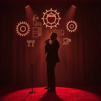 Cabaret Noir, Dark Cabaret, Psychedelic Jazz, theatrical male baritone, smoky late-night bar, vintage piano, double bass, brushed drums, psychedelic guitar, cinematic, ironic, philosophical, decadent, minor key, slow swing groove, noise fx