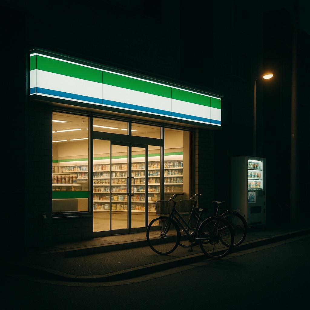 A Japanese chill-house x lo-fi groove track at ~104 BPM with minimal swing and a warm, steady pulse, Built on tight four-on-the-floor drums, soft sub bass, jazzy electric piano stabs, and subtle ambie