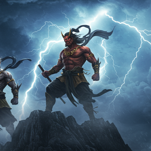 A dark Japanese cinematic fantasy rock with traditional instruments (taiko, shamisen), stormy atmospheric textures, and powerful female vocals, Includes one deep male spoken phrase for dramatic effect, Inspired by Touhou-style music and Japanese mythology