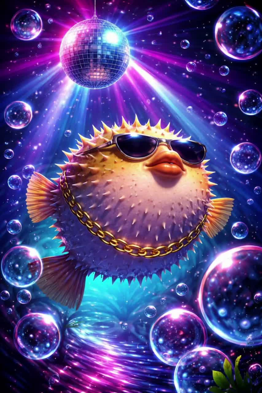 Analog disco bass, bubbly synth arpeggios, wet pads, sidechained chords, subtle bubble sound effects, steady 4/4 disco beat