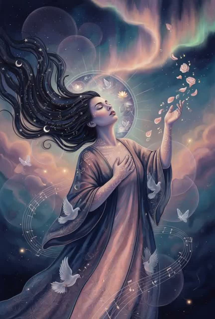[Instruments: Powerful opera orchestra (swelling strings, brass fanfares, woodwind flourishes, timpani), microtonal harp glissandi, theremin wavers, crystal singing bowls drones], ‑Contemporary pop, ‑rock, ‑EDM drops, ‑male choir dominance, ‑sparse minimalism