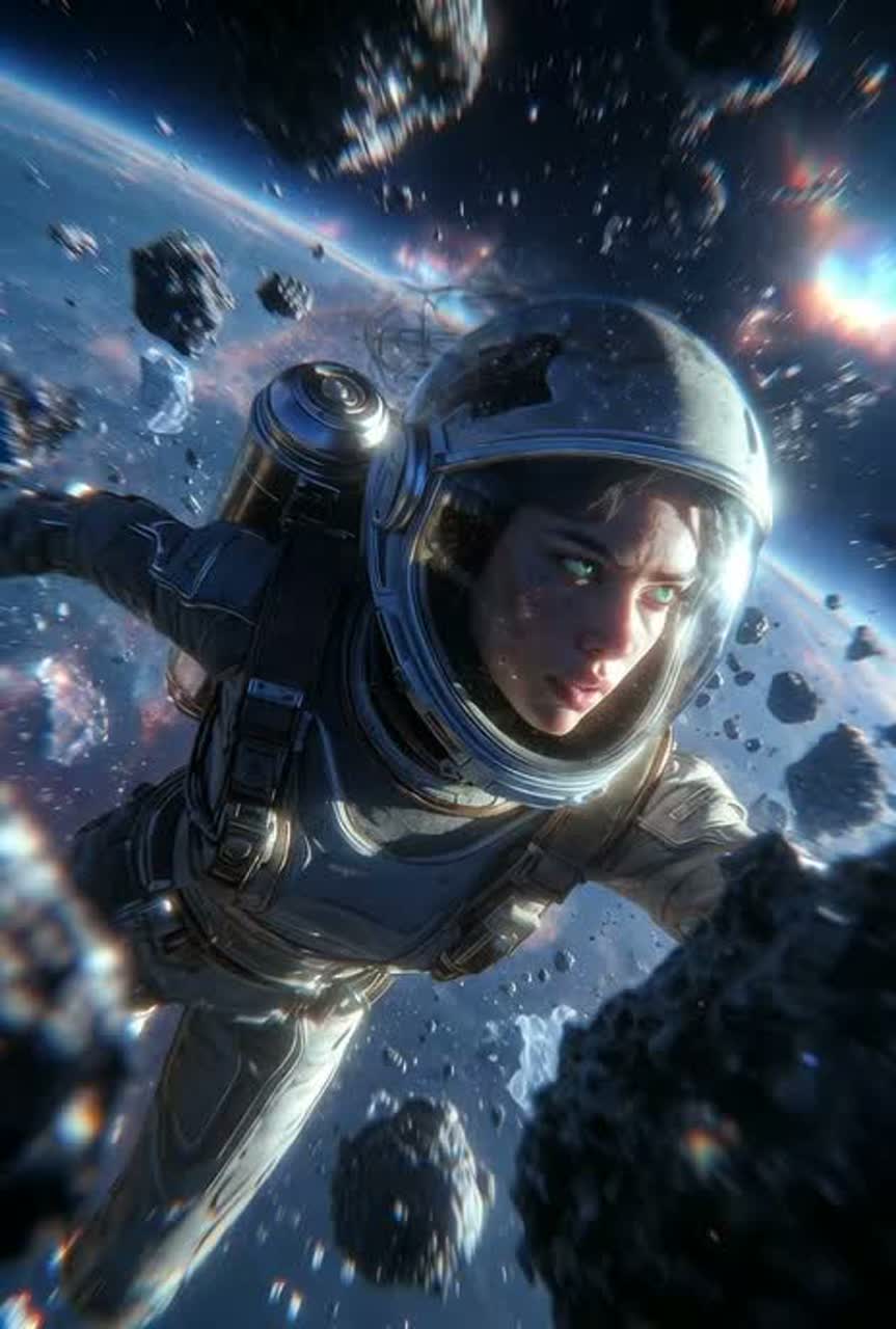 [Instrumentation: Pulsating nebula synth pads, sub-bass heartbeat throb, delicate finger-picked acoustic guitar (human anchor), ghostly theremin wails, glitch electronics for failing systems, swelling string orchestra after asteroid chaos, distant church bell in the stripped outro]