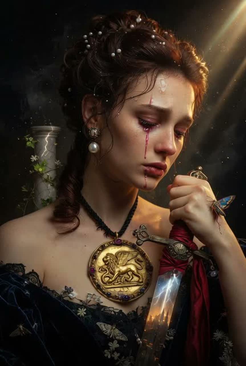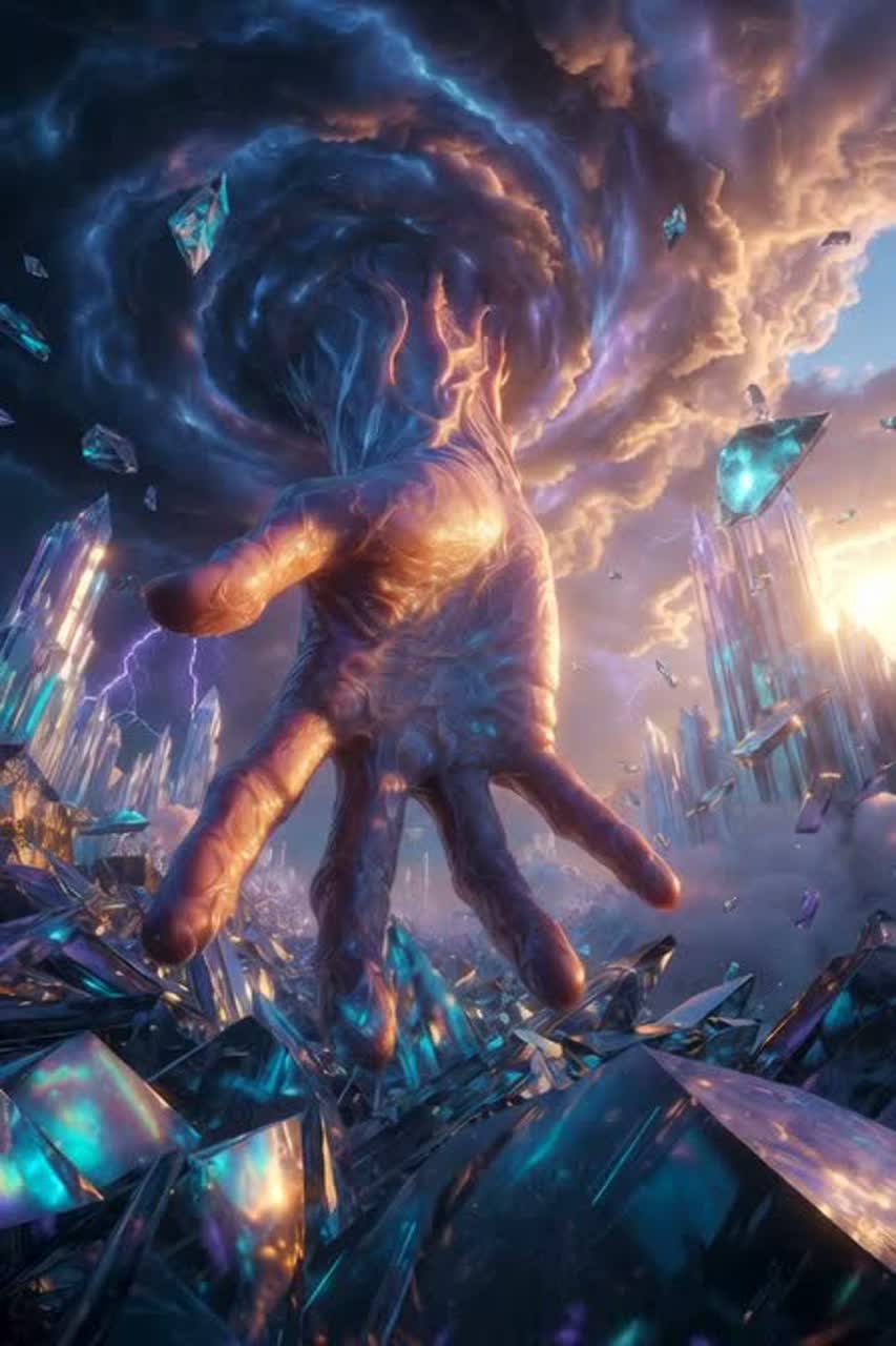 [Instruments: Layered orchestral strings/brass with cinematic reverb, live-sampled crystal singing bowls granulated and reversed for vortex/swirl, deep sub-bass synths pulsing like blood in veins, modular synths for shard impacts and lightning arcs, distant glass percussion hits, occasional microtonal throat vocal drones as "instrument"], ‑glitch, ‑pop, ‑EDM, ‑acoustic guitar, ‑piano, ‑non-metal, ‑distortion