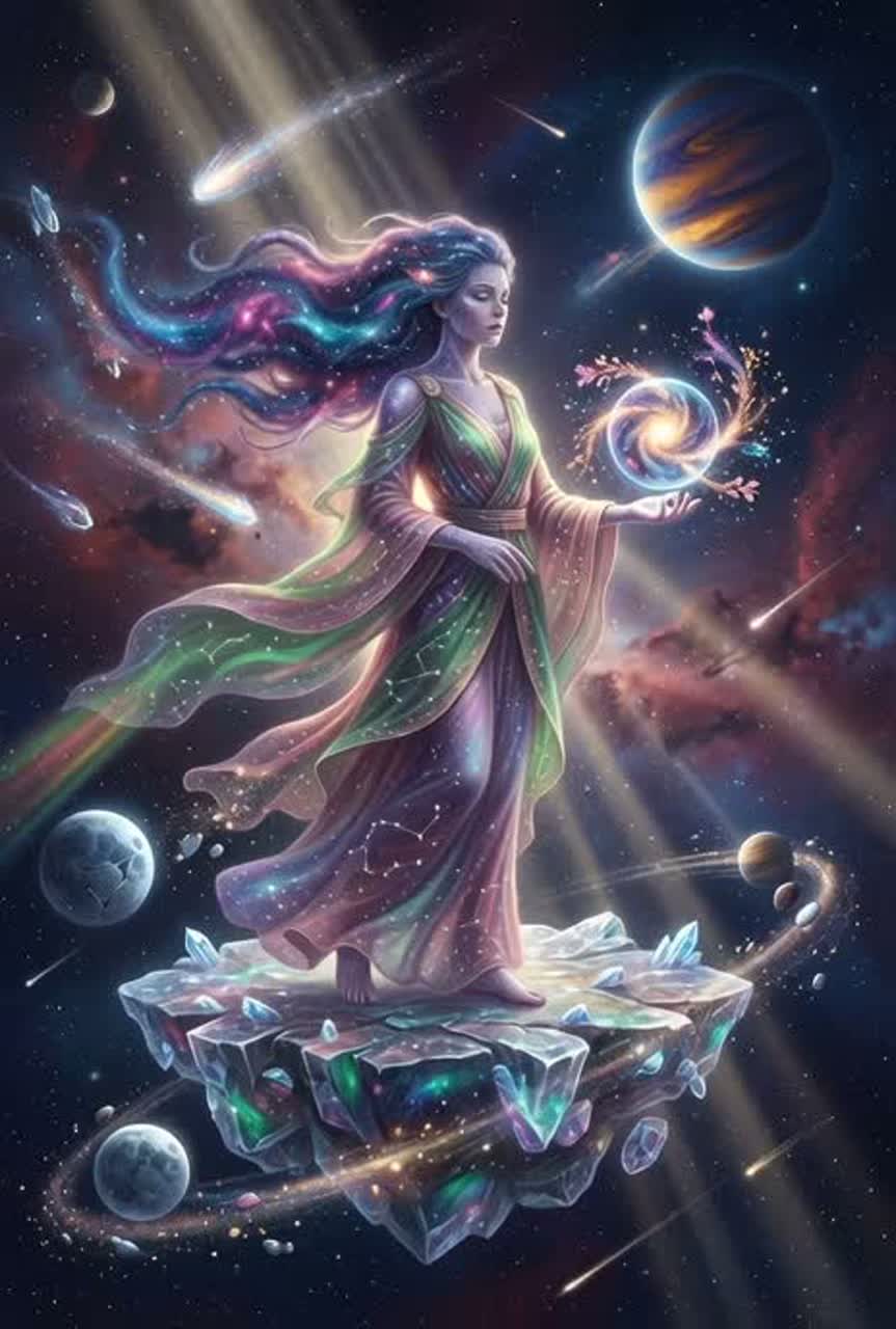 [Instruments: Resonant crystal bowls and glass harmonica synths, orchestral strings that bend into deep sub-bass drones, ancient lyre plucks morphing into arpeggiated electronica, pulsing nebula-like bass, distant choral pads, subtle Andean wind flutes that disintegrate into glitchy starlight], ‑pop, ‑EDM, ‑standard rock, ‑upbeat dance, ‑generic ballad, ‑hip-hop, ‑trap, ‑commercial synthwave