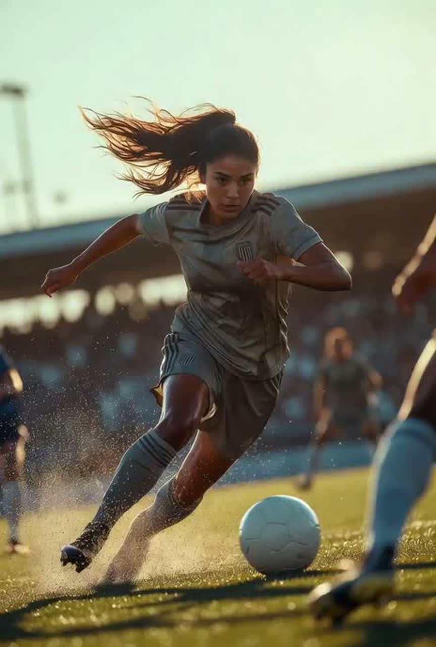 [Instrumentation: Driving kick-snare drums pounding like cleats on turf, soaring electric guitars with distortion for intensity, pulsing synth bass and rising arpeggios for adrenaline, conga percussion for South American soccer energy, atmospheric field samples (crowd roar, whistle) and subtle piano for introspective moments, ]