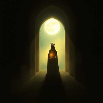 Medieval dark folk ritual ballad at 84–90 BPM with a steady walking cadence, Soft, breath‑worn lead vocal (female or androgynous), intimate and luminous, Acoustic guitar or dulcimer plucks, low frame‑drum heartbeat, deep bowed‑string drone, faint choral harmonies, Atmosphere of starlight, river‑reflections, and quiet revelation, Verses should feel like a pilgrimage through night and silence; refrains should be chant‑like with subtle rhyme decay; chorus should bloom with inner radiance, Maintain an ancient, mythic tone with gentle emotional lift toward the final Becoming, Soft, steady lead vocal with medieval phrasing and minimal vibrato, Add light harmonies on refrains and a gentle choral lift on the final chorus, Frame drum on beats 1 and 3 for a ritual march feel, Keep drones warm and low (cello or viola da gamba), Add subtle dulcimer or harp shimmer as the song progresses, Final chorus should feel luminous but still grounded
