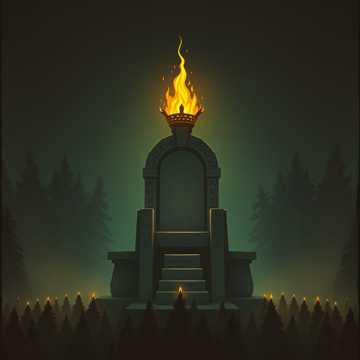 Dark folk textures unfold with delicate minor key acoustic guitar arpeggios, underscored by deep, evolving drone strings, A hand drum delivers a slow, pulsing heartbeat at 78 BPM, growing more urgent as the song progresses, Occasional medieval instrumental flourishes and subtle dissonances heighten the mythic, luminous darkness, Dramatic crescendos rise and fall, maintaining tense intimacy and meditative ritual energy