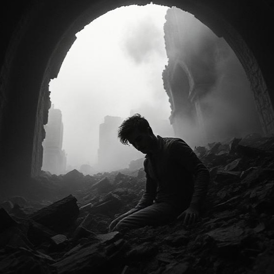 Dark, existential German rap featuring tense, clipped, raspy male verses over dry, rhythmic piano stabs, steady hip-hop kick/snare pattern, and deep bass groove, Hooks break with chant-like, melodic, rising vocals on “Alles muss raus, ” backed by wide sustained piano, heavier drums/bass, The bridge strips to piano and bass with emotional chant, then returns to the full arrangement, The outro softens to half-spoken lines, fading piano, and whispers, Vocal-forward, powerful hook, tense passionate verses, and a clean, modern mix throughout