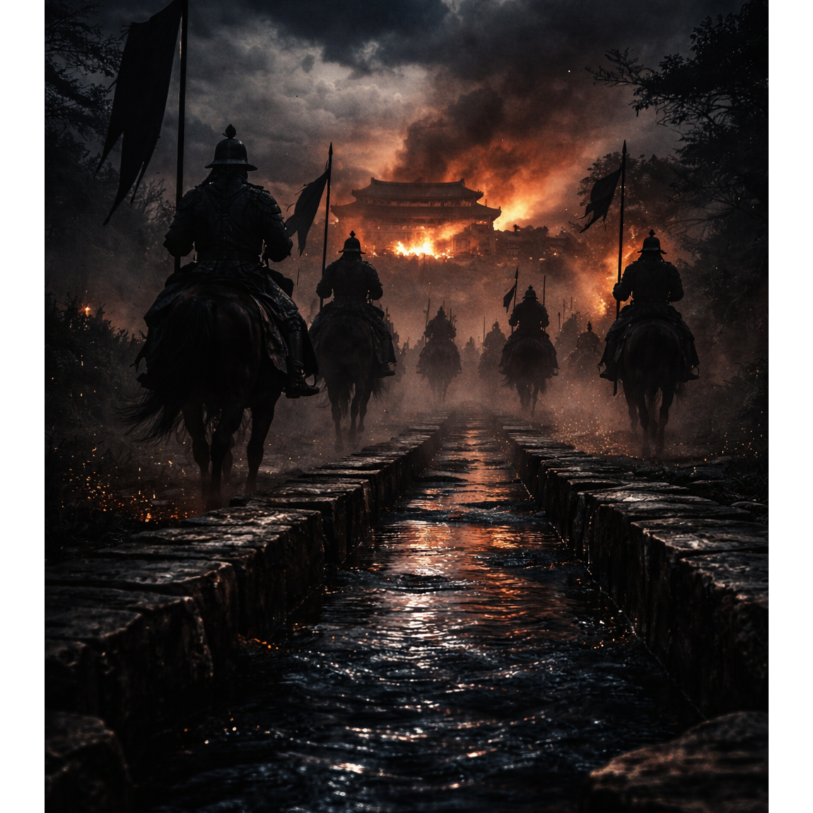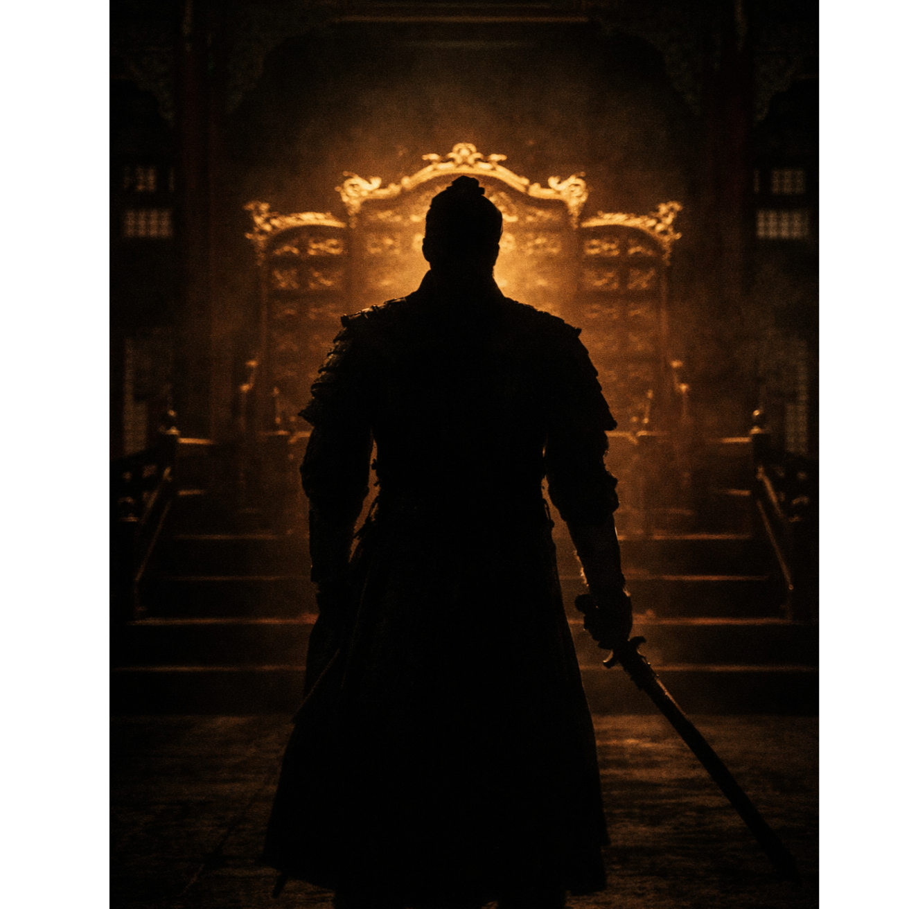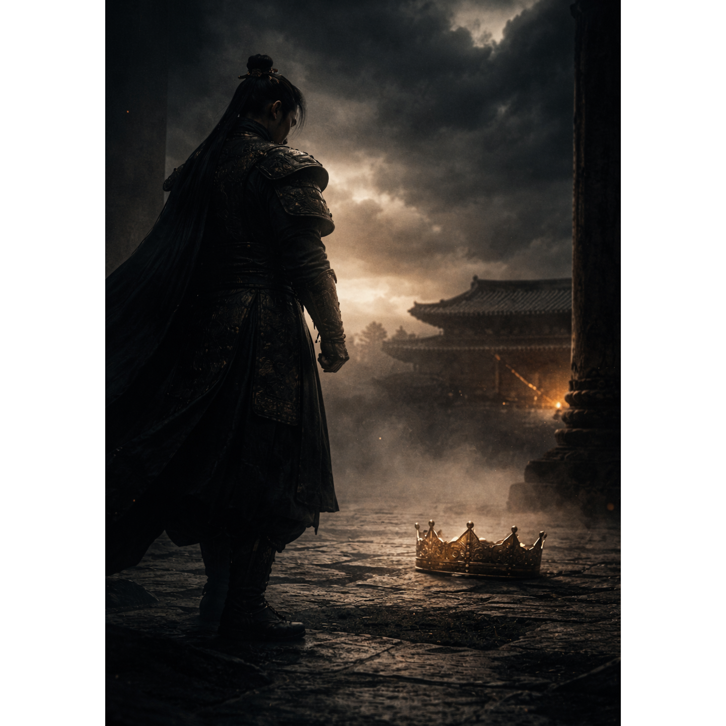 Epic historical metal, 122 BPM, Deep male vocal with restrained authority, not screaming, Minimal reverb, dry forward mix, Cinematic low drums, traditional Korean percussion accents, heavy but controlled guitar layers, Atmosphere of political tension and imperial diplomacy, Theme: accompanying crown prince to Yuan court, 3 years in Shenyang, return to Goryeo, execution of Wang Yuso and Song Bangyong to establish royal authority, Tone dignified, strategic, not emotional rage, Focus on power consolidation and survival within empire structure
