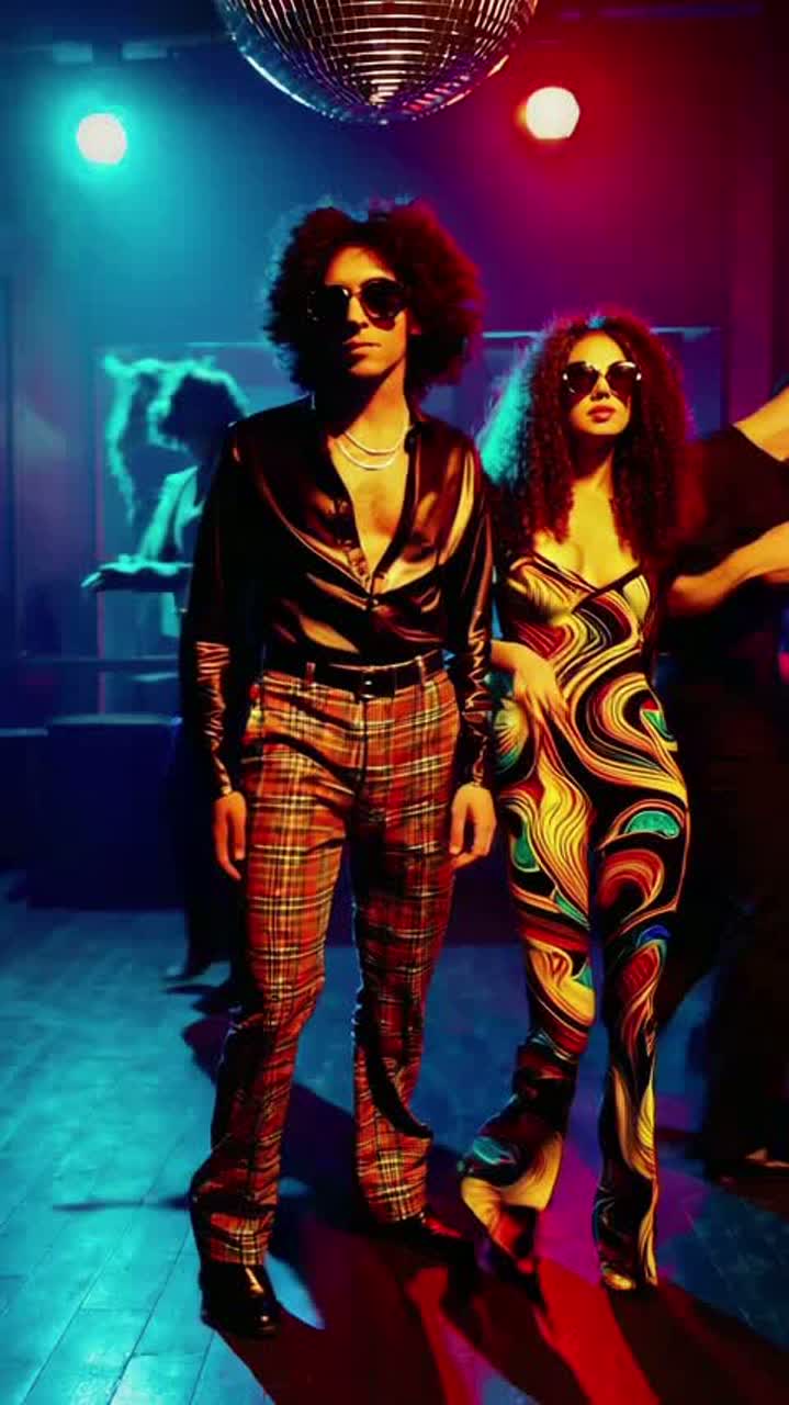 High-energy disco power metal singable anthem in a major key, Driving rhythm of drums, funky walking bass lines, & prominent electric guitars playing both rhythmic power chords and melodic lead lines
