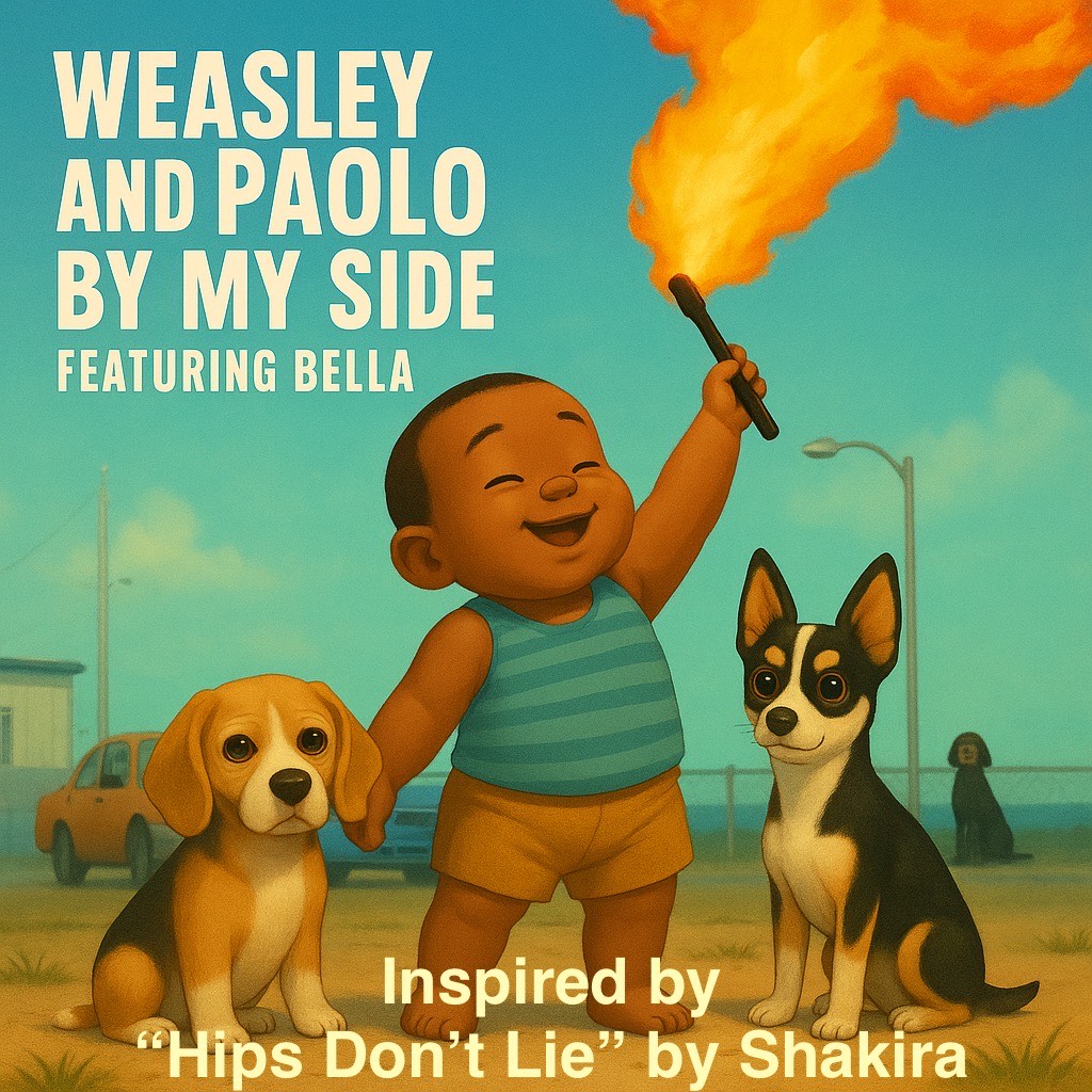 A heartwarming famous children’s animation franchise style song called “The Story of a Showbaby, ” Sung from the perspective of Weasley the chiweenie dog, with playful, loyal energy and tender emotion, The song should sound cinematic and family-friendly—think “We Don’t Talk About Bruno” meets “You’ve Got a Friend in Me”, Include gentle dog barks and baby coos as background sound cues, Blend acoustic pop and soft orchestral elements, Mood keywords: warm, loving, nostalgic, magical, loyal, family bond, gentle humor, animated film energy, Tempo: mid-tempo pop ballad, Voices:
