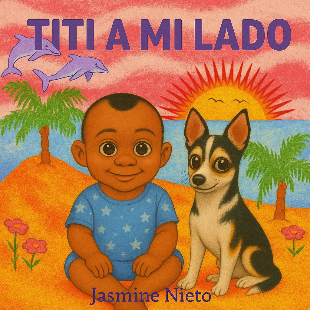 Playful reggaetón/Latin urban track, about 104–106 BPM, inspired by Bad Bunny’s “Tití Me Preguntó” but family-friendly, Bouncy dembow rhythm with deep 808 kick, snappy snare, and rolling hi-hats, Add bright synth stabs, plucked guitar, and playful vocal chops (no lyrics), Energetic, fun, and bilingual-friendly, with space for call-and-response chants like “ti ti a mi lado” and “By My Side, ” Perfect for kids and families dancing together, Instrumental only, no vocals, Length: 1:00–1:30