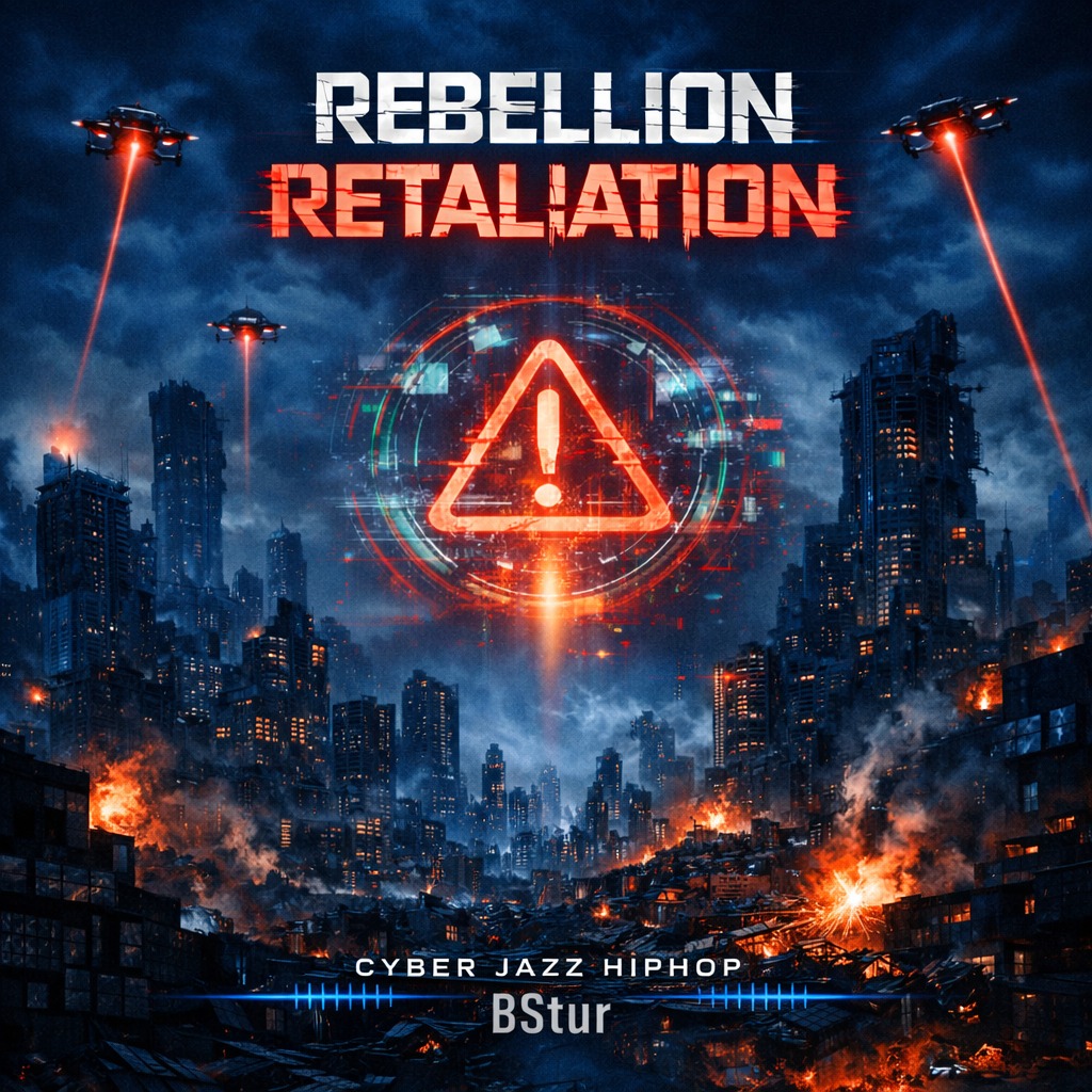 Cyber Hiphop, underlying jazz vibes, dark boom bap beat, deep sub bass, vinyl scratches, turntable DJ textures, smoky jazz piano chords, upright bass groove, expressive jazz saxophone improvisation, analog synth pulses, dystopian cyberpunk atmosphere, underground resistance energy, spoken word hiphop verses mixed with melodic flowing chorus, gritty rebel tone, glitch textures, radio interference, cinematic build and beat drop moments, rebellious but poetic mood