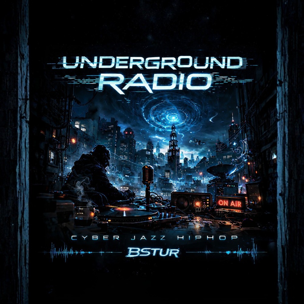 Dark cyber jazz hiphop at 92 BPM with dusty boom bap beats, deep upright bass groove and jazzy rhodes chords, turntable scratches and vinyl crackle, underground radio static textures and analog transmission noise, rebellious spoken rap verses and wave-like sung hooks, sax improvisations and brushed jazz drums, cinematic dystopian atmosphere in a hidden resistance broadcast from a ruined futuristic city