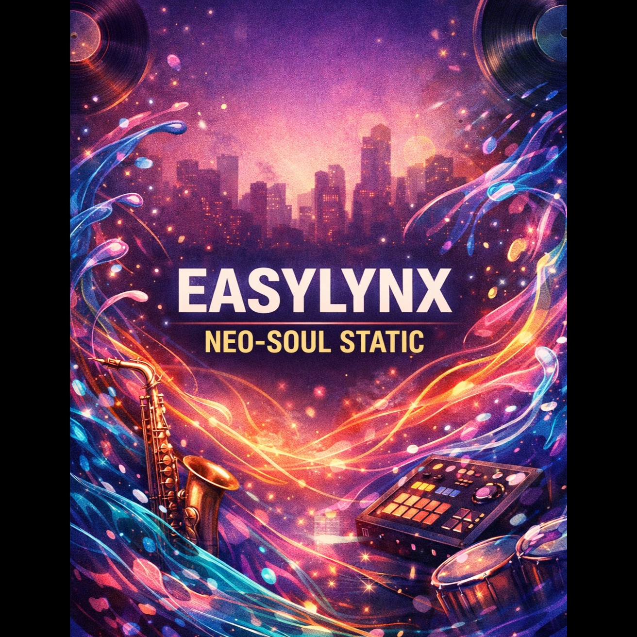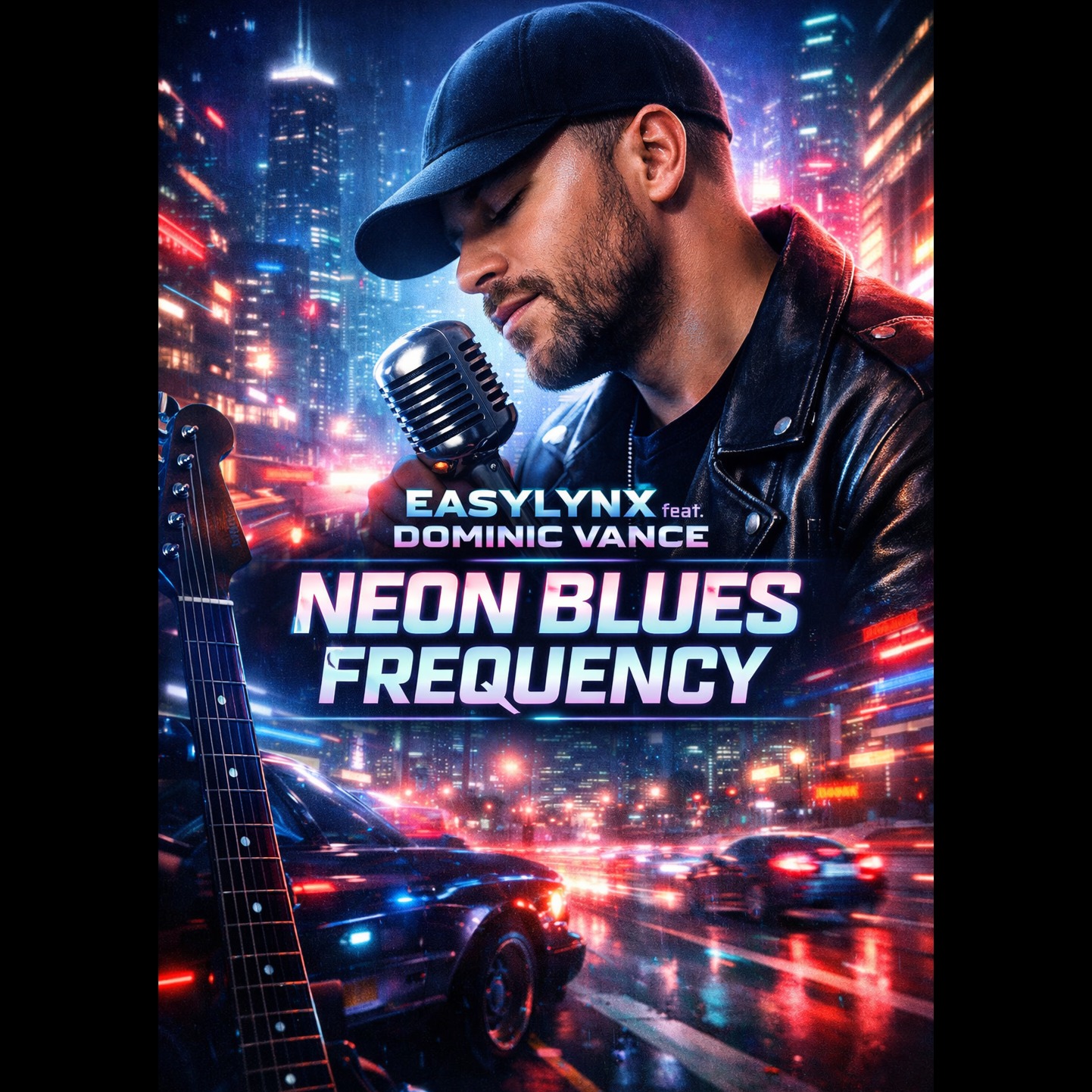 Modern liquid drum and bass at 170 BPM, extended 3–4 minute arrangement, infused with Chicago blues emotion in a futuristic, neon-lit style, Clean rolling liquid drums, deep melodic sub-bass with glide, subtle bass guitar texture underneath, Auto-filtered electric blues guitar with delay and chorus, wide atmospheric pads, soft synth arps, light vinyl texture blended with modern polish, Smooth male blues/soul vocal, calm and reflective, singing about late-night drives, inner balance, city lights, frequency, and finding peace inside chaos, Evolving structure with ambient intro, verses, spacious chorus, instrumental neon-guitar break, liquid drop, and dreamy outro, Clean, wide mix, night-drive cinematic energy