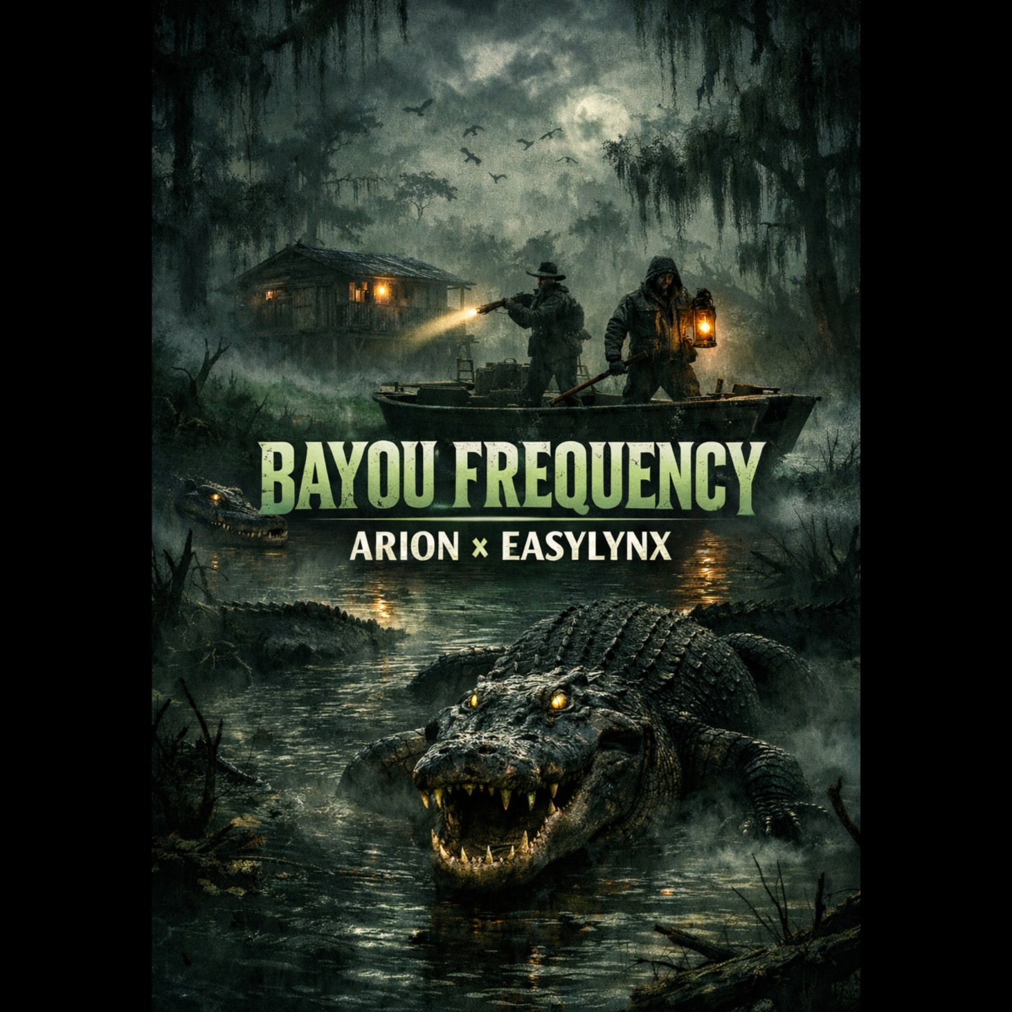 Deep, hypnotic liquid drum and bass at 170 BPM, extended 3–4 minute arrangement, infused with southern bayou blues atmosphere, Rolling liquid drums with deep pocket groove, thick sustained sub-bass that moves like water, Minimal blues guitar harmonics, swamp-style slide guitar textures, distant organ drones, low choir pads, water and insect night ambience, Very minimal vocal presence — occasional wordless hums and whispered phrases used as texture rather than lyrics, Long atmospheric intro, gradual build, deep liquid drop, extended instrumental meditation, and slow fade-out, Spiritual, earthy, immersive night-swamp feeling