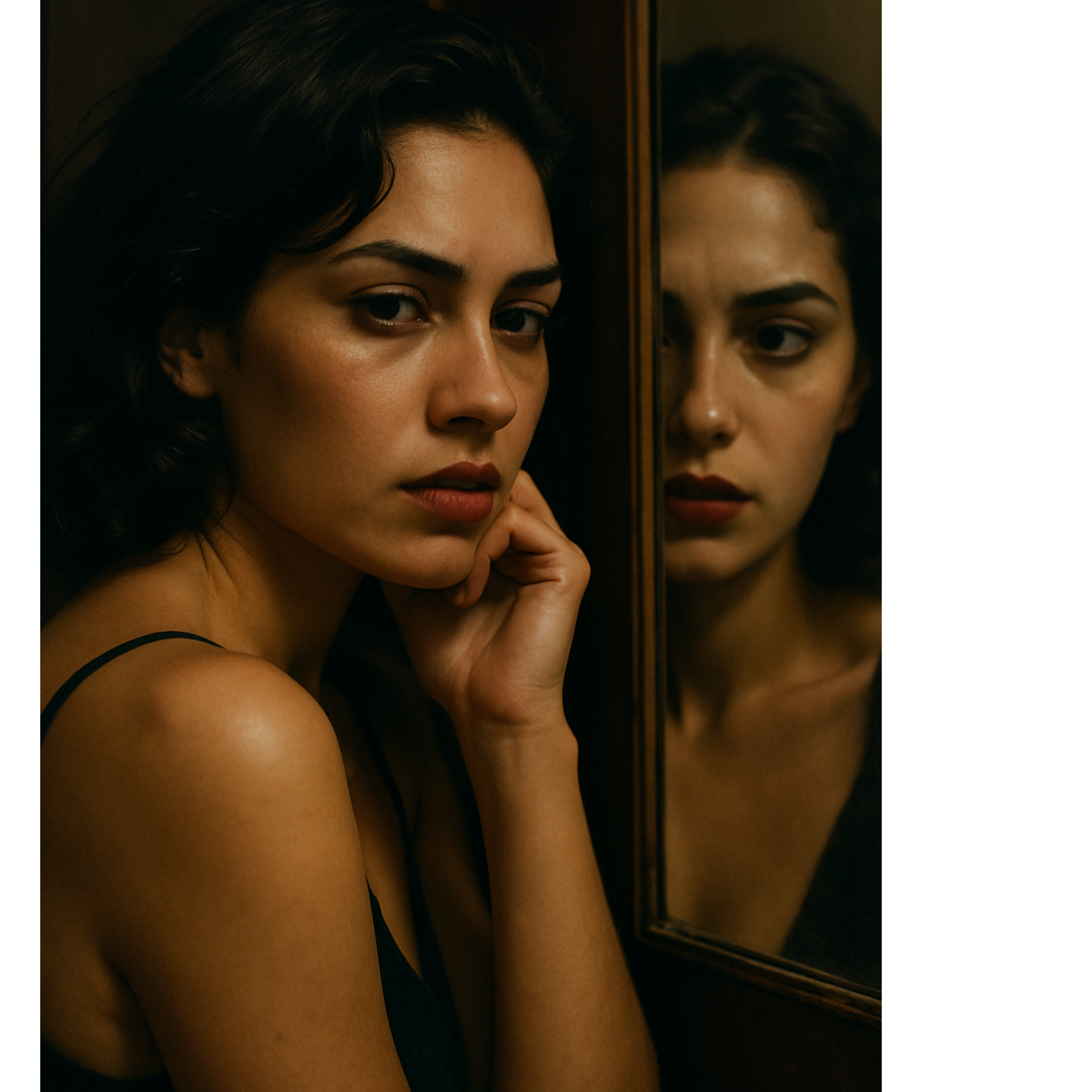 A cold, elegant female vocal with a sensual yet restrained charm, No playfulness — instead, sophisticated, slightly cynical seduction, A selective allure that does not allow everyone in, ]