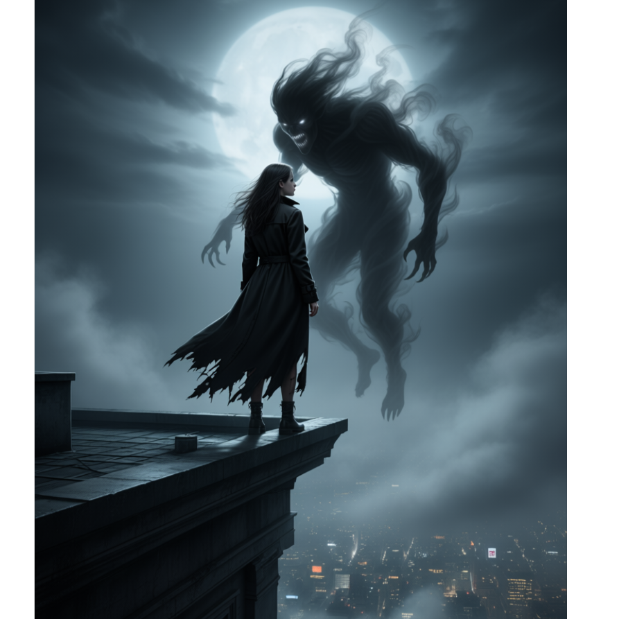 [atmosphere: Night, Abyss, Edge of a Rooftop, Psychological Thriller]