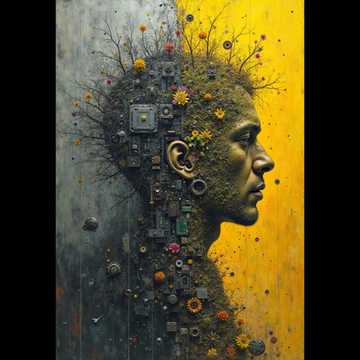 Opening with mechanized synth pulses, glitch effects, and gritty drums, the track melds distorted guitar riffs alongside industrial percussion, Synthwave bass drives the verses, with raspy baritone vocals soaring over the dynamic contrast, Intensity builds: glitch textures shift into natural soundscapes—strings, ambient tones, live drum flourishes—yielding an electrifying change from mechanical to organic, Each section amplifies raw energy and authenticity, riding a 126 bpm tempo to an explosive, anthemic finale