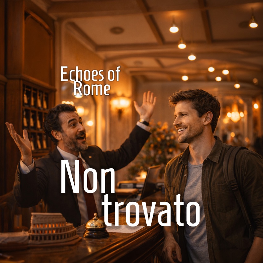 3-4 minutes, Playful Italian-inspired swing pop with light jazz elements, Medium tempo, lively piano, upright bass, soft drums with brushes, subtle brass accents, Hotel ambience intro, Male vocal, expressive and slightly humorous, Include Italian spoken lines like “Non trovato, signore” and “Ecco! Trovato! Benvenuto!”, Catchy chorus, lighthearted mood, charming and cinematic, Keep it organic and warm, not overproduced, sanfte Basslinie, gefühlvoller männlicher Gesang, Progressive urban ballad with slow forward motion, inspired by late-70s Pink Floyd’s emotional restraint and Genesis-style pacing