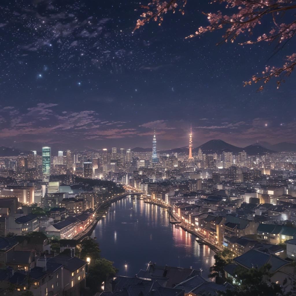 > City Pop song, female vocals, Japanese and English lyrics, groovy bass, funky guitar, sparkling synths, 80s Tokyo night, romantic and dreamy mood