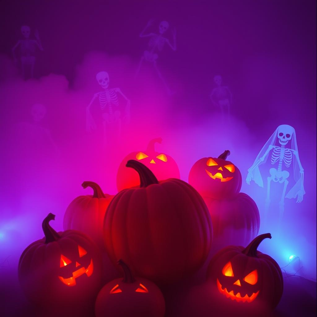 These weave into the chaos, producing a cute yet spooky, high-energy Halloween groove, Tension comes from build-ups, drops, unexpected chords, fragmented textures, and turntable-driven disruptions, Fast, playful, urban-bounce feel evokes skating through spooky starry streets, fusing Plunderphonics chaos, retro surf riffs, neon ambiance, funk, scratches into an energetic, eerie-fun track