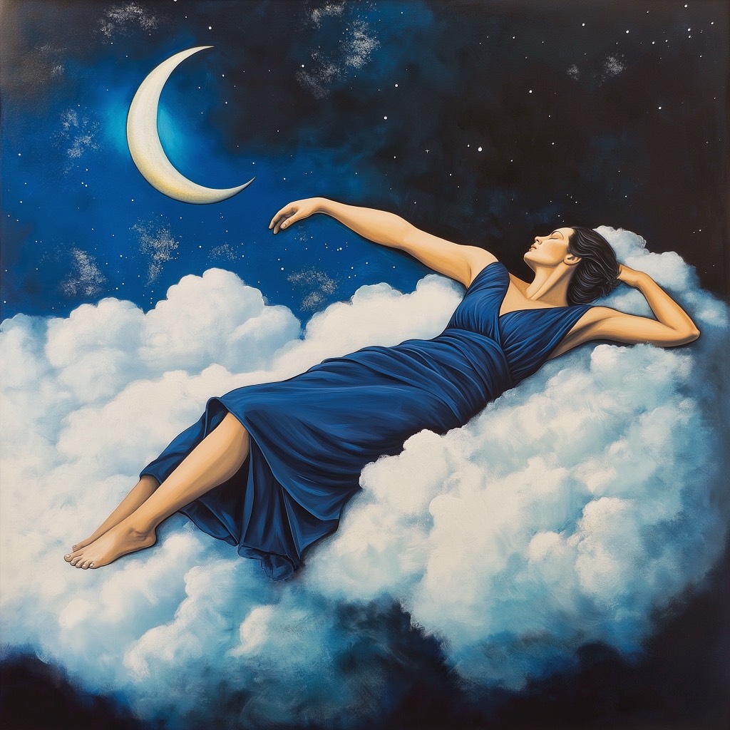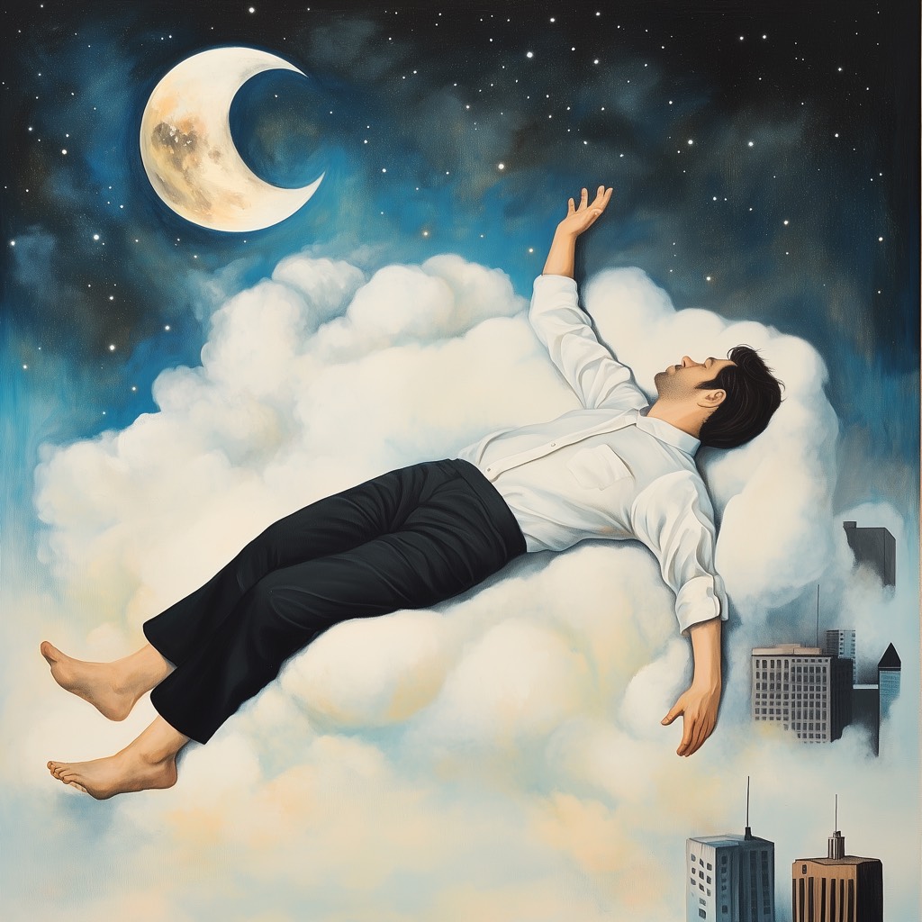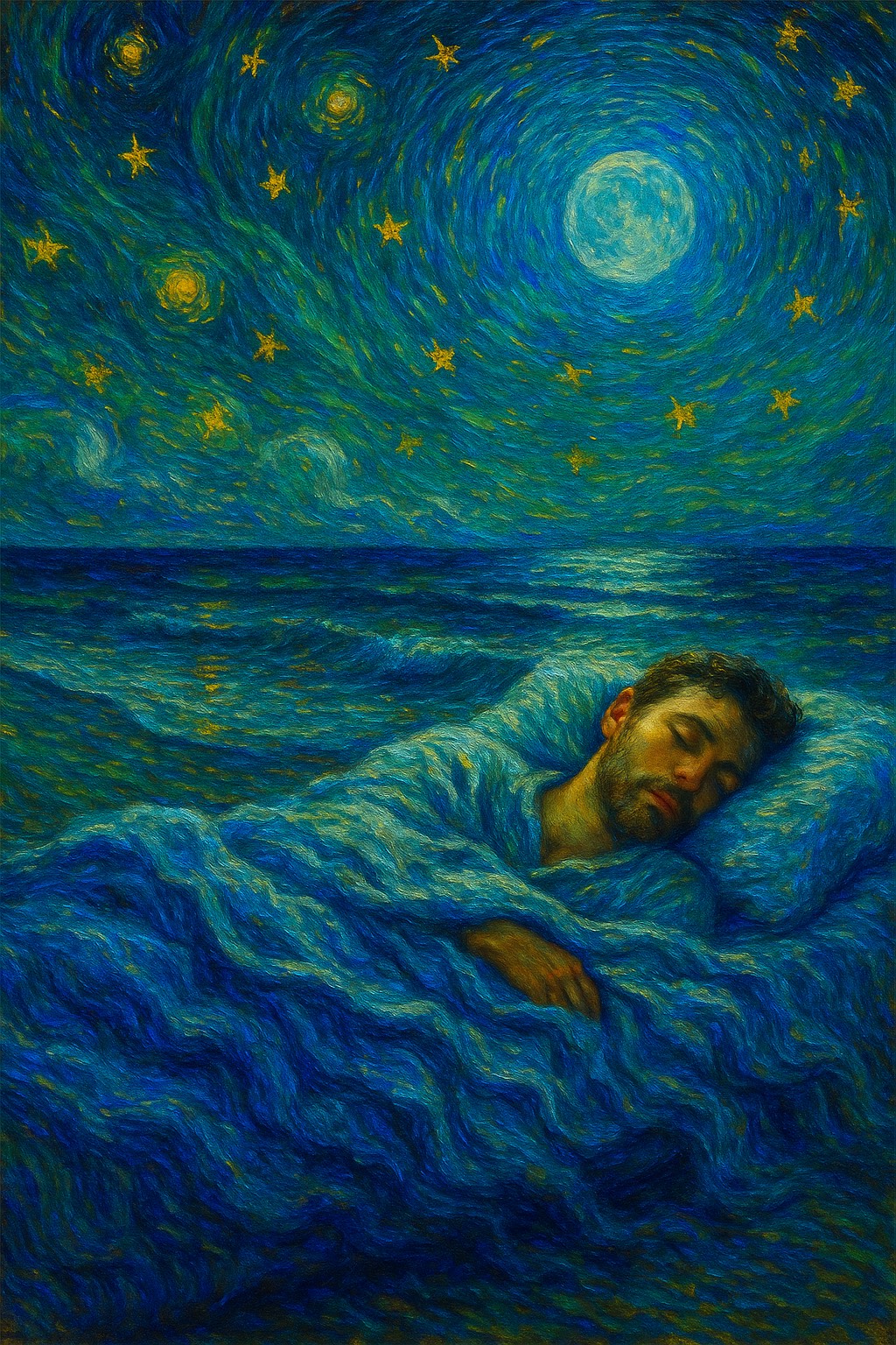 Deep distinctive unique sleepy peaceful baritone male lead vocal, faint mallsoft chants backup vocals, sleepy yet catchy liminal vibes, melodic earworm hooks with glissando, dreamy ambient chillwave instrumentation, soft shimmer guitar, warm analog synths, ocean textures, subtle jazzy soul inflections, bittersweet but peaceful mood, feels like floating under a glowing blue moon