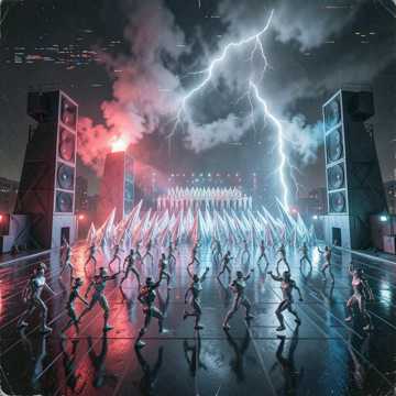 Tech House, Singalong Club Anthem, 128 BPM, A minor, punchy kick drum, driving bassline, 90s euro-dance nostalgia, chopped vocal stab, euphoric breakdown, festival drop, hypnotic repetition, chest-hitting sub bass, bright synth stab, Y2K aesthetic, dance floor energy, four-on-the-floor groove, male robotic vocal, anthemic chorus, emotional bridge, crowd singalong moment